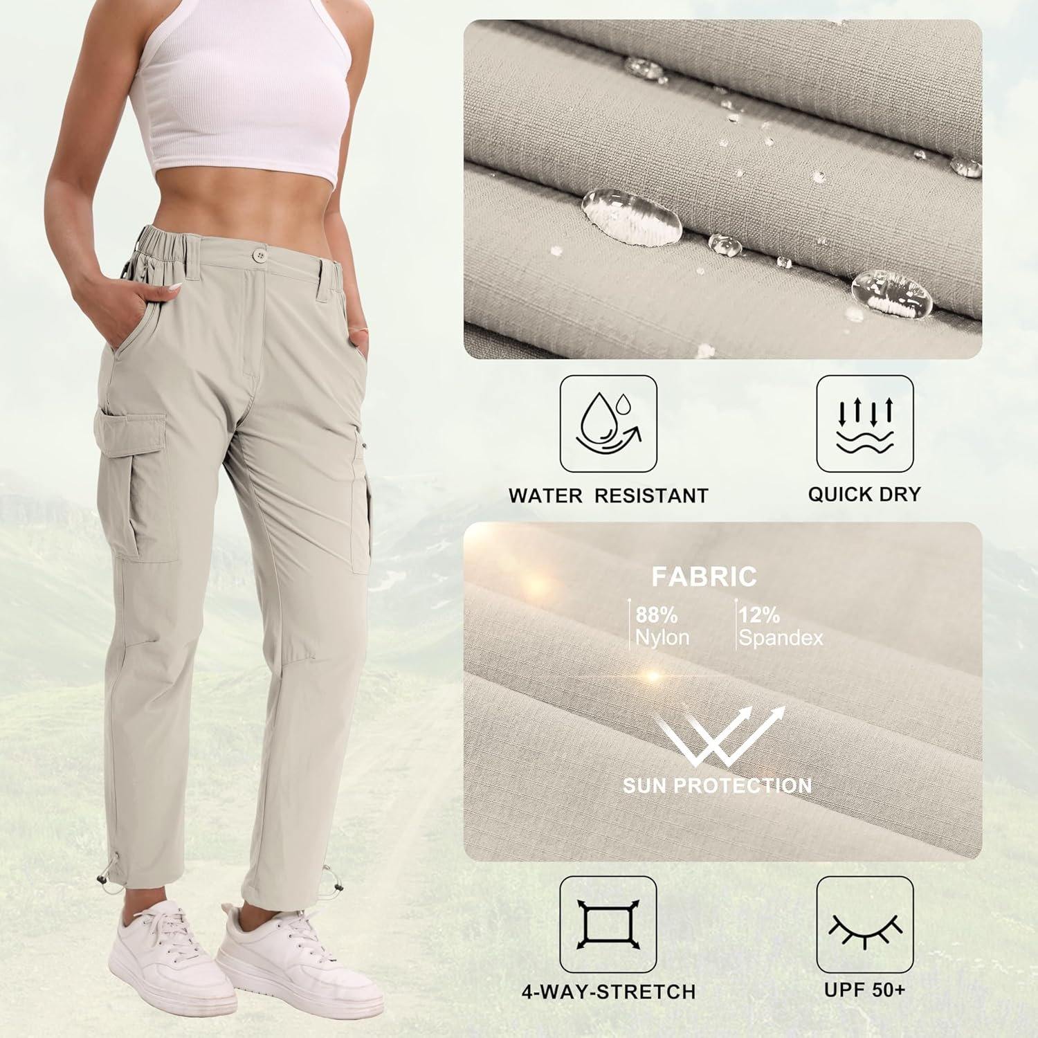 Womens Hiking Pants Quick Dry UPF 50 Travel Golf Safari Lightweight Camping Cargo Pants Zipper Pockets