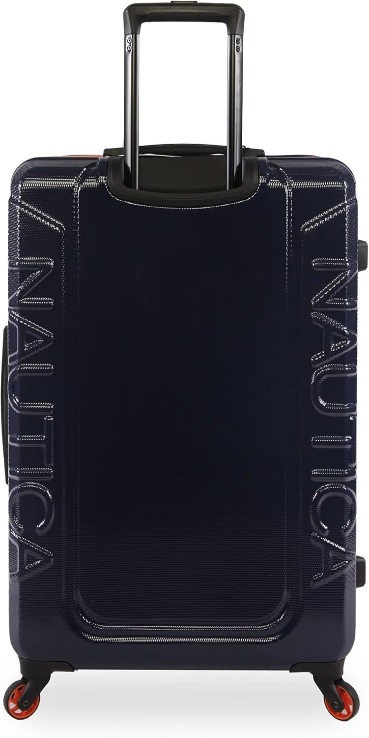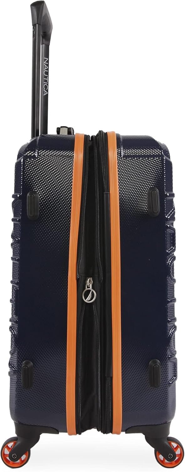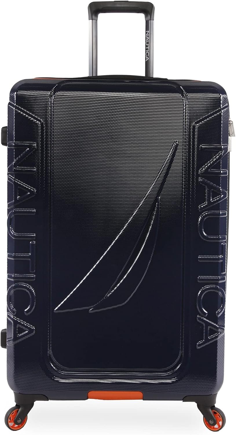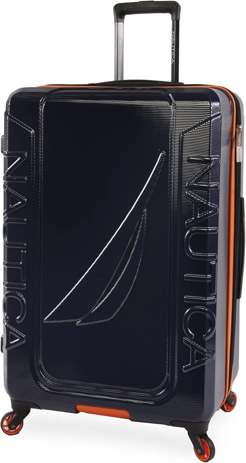 NAUTICA Birch Hardside Spinner Luggage, Navy/Orange, Checked-Large 29-Inch