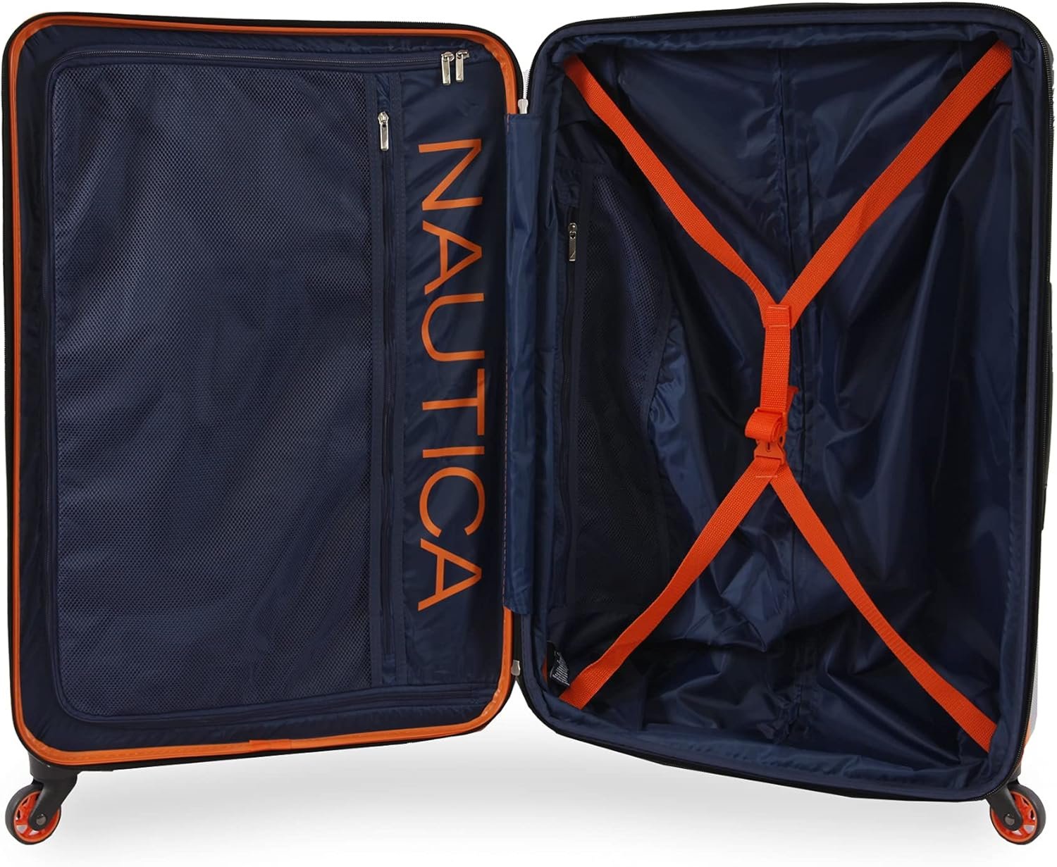 Zip through the terminal and to your destination with this hard side, spinner luggage from Nautica. Made of durable super abs hardshell technology, you’ll be at ease knowing your clothing and accessories will be safe. This luggage features push button trolley handle, is expandable which offers 25% additional capacity, top, side and bottom carrying handles for easy lifting, multiple interior compartments and interior mesh pockets and tie down straps.