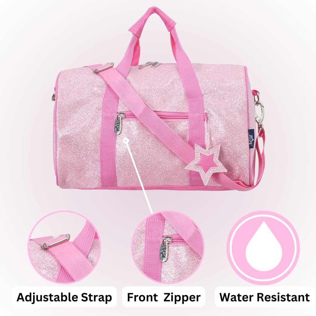 NGIL Mini Super Star Duffle Bag for Dance, Sports, Ballet, Tumbling, and Gymnastic – Glitter Cheer with Shoulder Strap and Pockets (Glitter-Pink, Small)