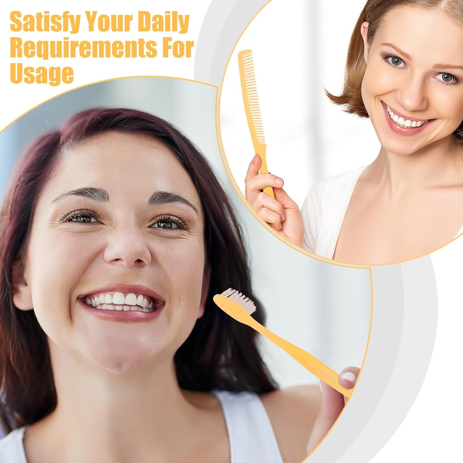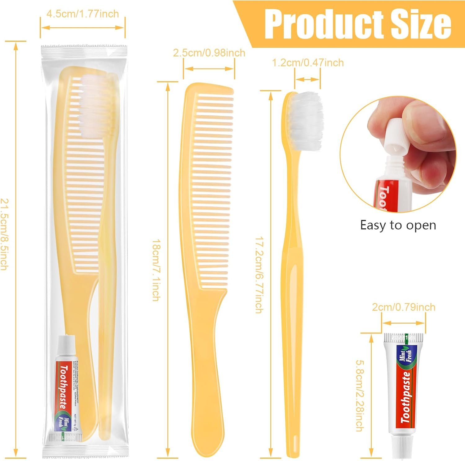NICEMOVIC 200 Pack Yellow Disposable Toothbrushes Bulk with Toothpaste and Comb Individually Wrapped Bulk Disposable Travel Size Toiletries Kit Homeless Care Package Supplies for Travel Hotel Charity