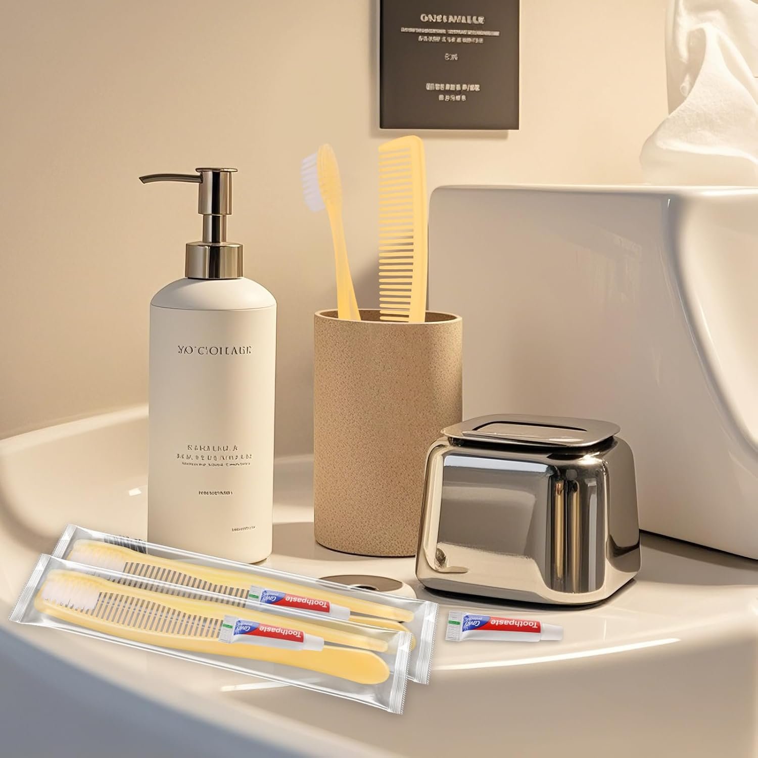 Yellow Disposable Toothbrushes Bulk with Toothpaste and Comb