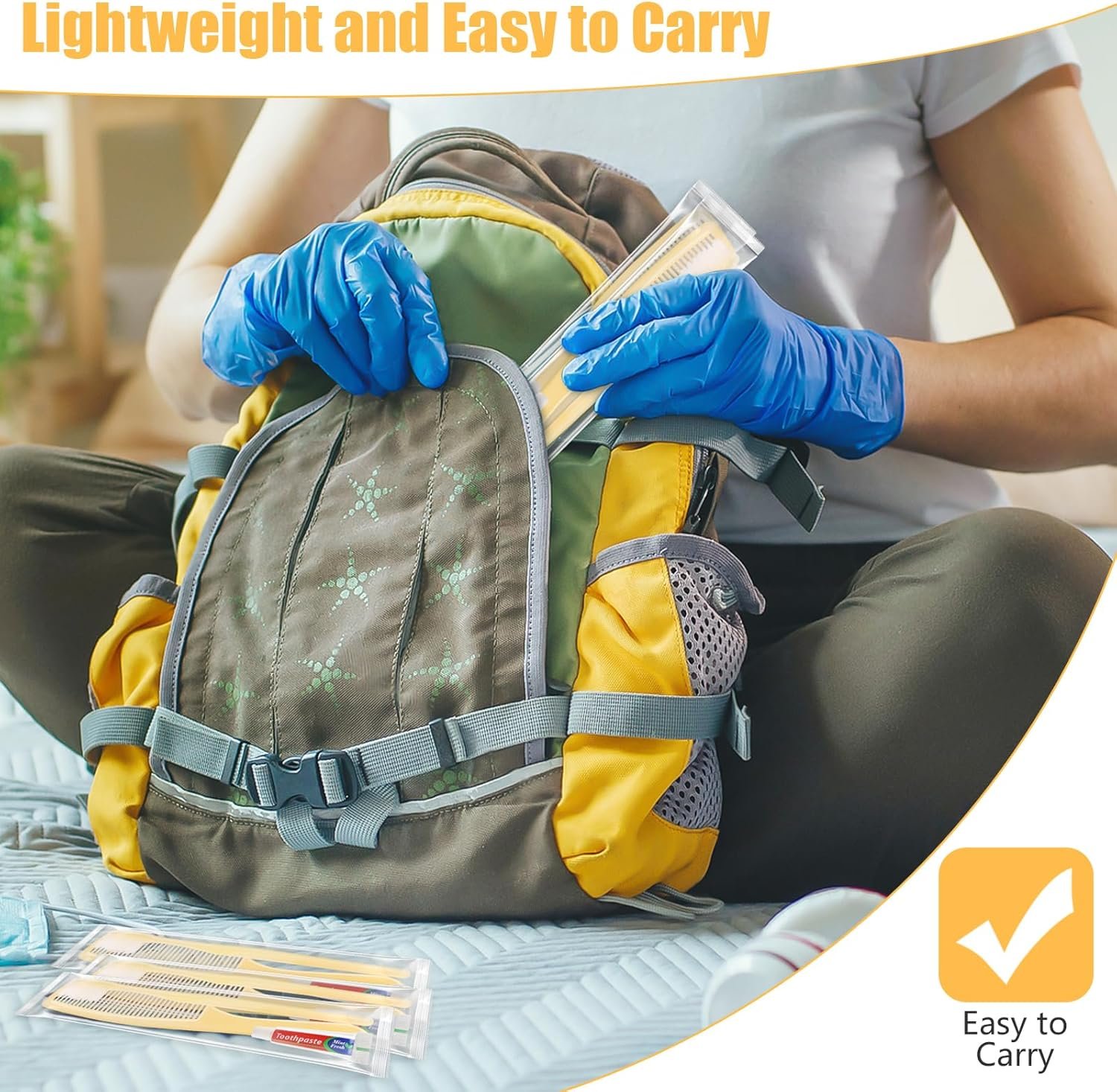【EXTENSIVE APPLICATION】The toothbrush and toothpaste set is compact and portable, easy to carry without taking up too much suitable for hotel, travel, shelter, business trip, charity, camping, toiletries, guest apartment,hygiene kits for homeless in bulk and more.