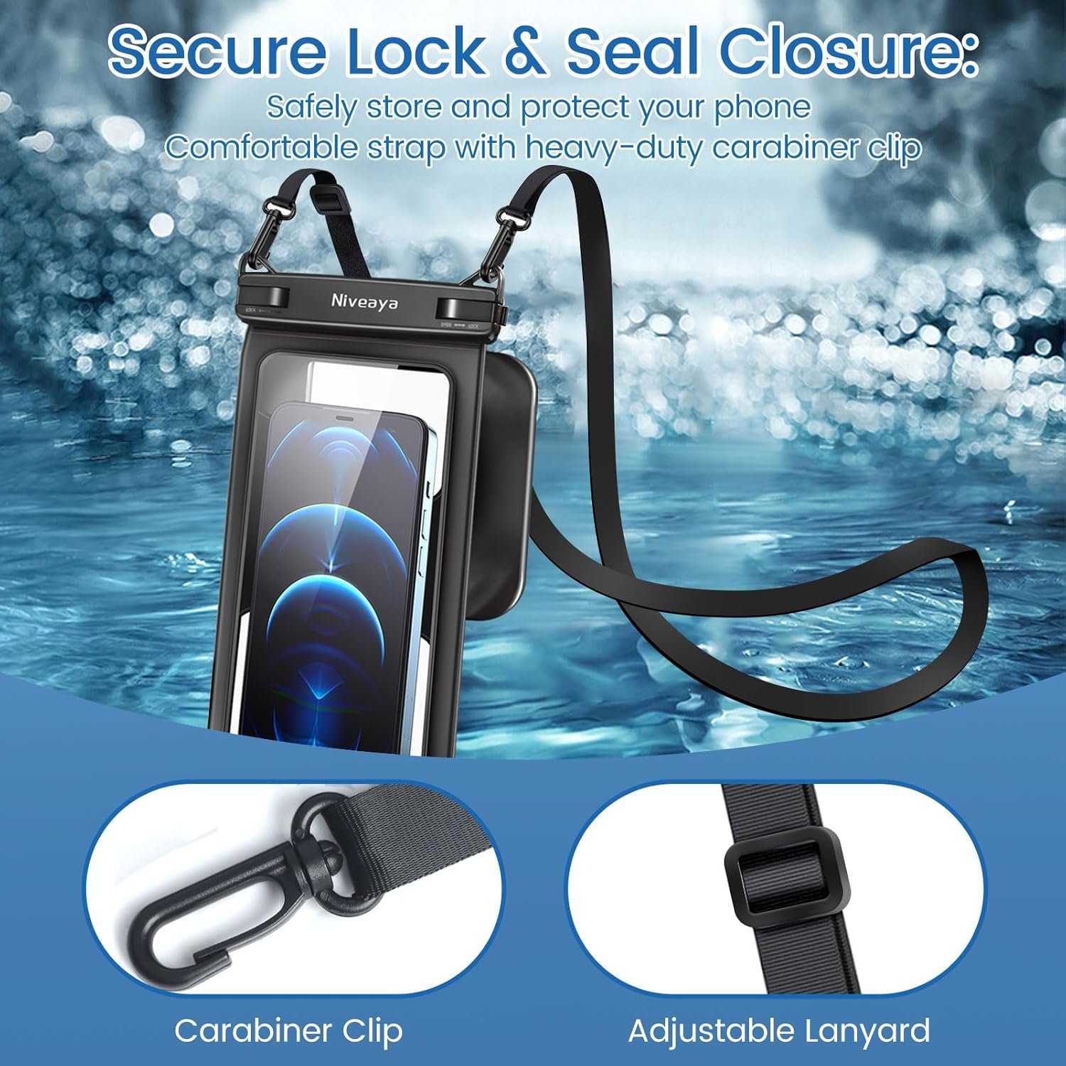 Niveaya [Floatable Floating Waterproof Phone Pouch 2 Pack-Up to 8.5″, Large Space Adjustable Neck Lanyard Waterproof Phone Case, Phone Dry Bags for Vacation Beach Pool Kayak Cruise Travel Essentials
