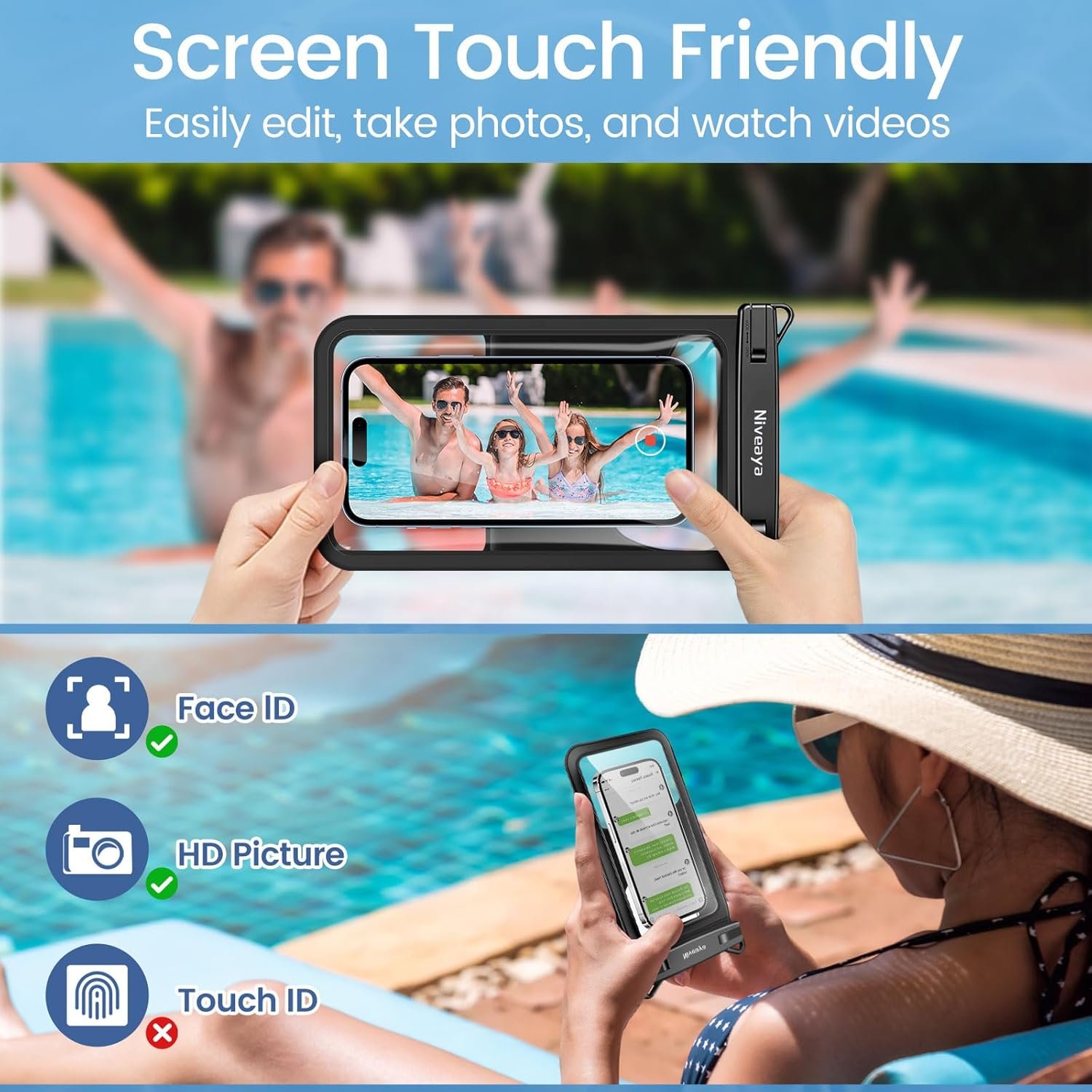 【Super Large Space】- Niveaya waterproof cell phone pouch is fully upgraded and designed by the top team in the industry, not only has a stylish appearance, but also made a comprehensive upgrade in storage space. It can hold your cell phone, car keys, lipstick, credit cards, cash and other items you carry at the same time. You also don’t need to take out the items when you use your cell phone, and it won’t block your camera.
