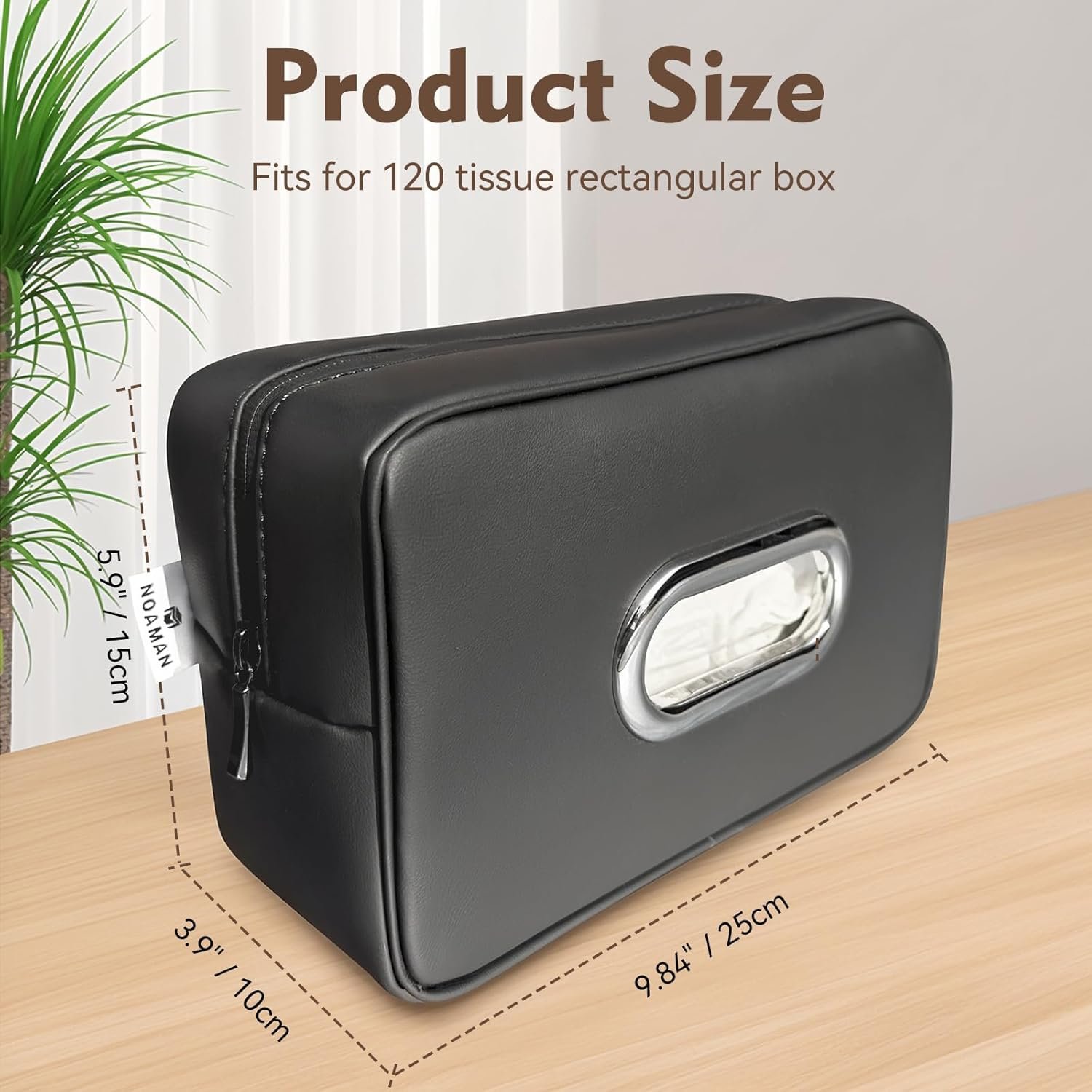 【Large Capacity 】 The Noaman car kleenex holder boasts a spacious capacity designed for 120-sheet tissue boxes, allowing you to use tissues directly from the box without removal. this tissue holder for car with dimensions of 9.84″ × 5.9″ × 3.9″, which is crafted from premium PU leather, offering a waterproof and soft-touch finish. Its high-quality material not only easy to clean but also ensures that tissues remain dry and ready for use, thanks to the protective interior lining.