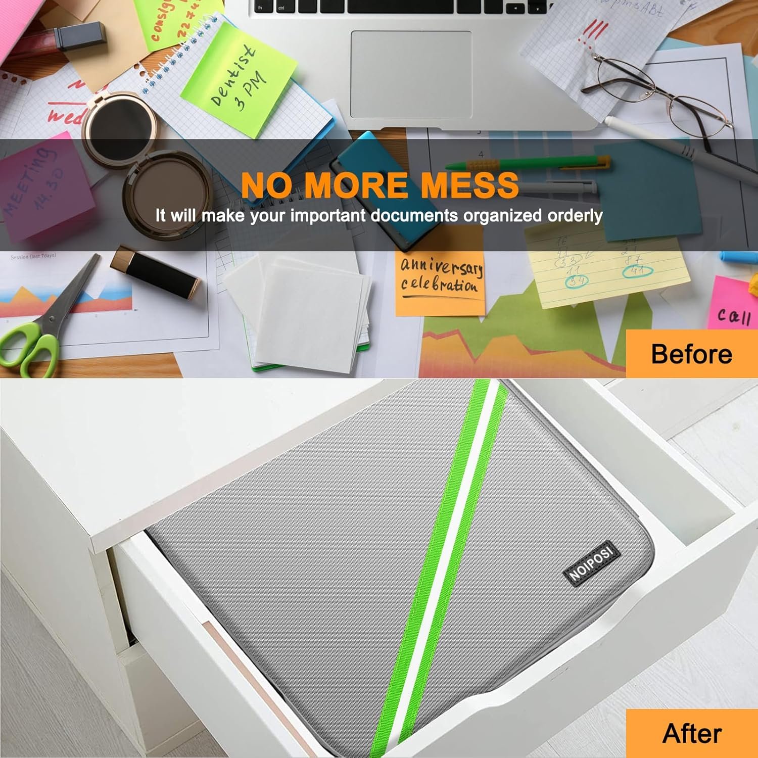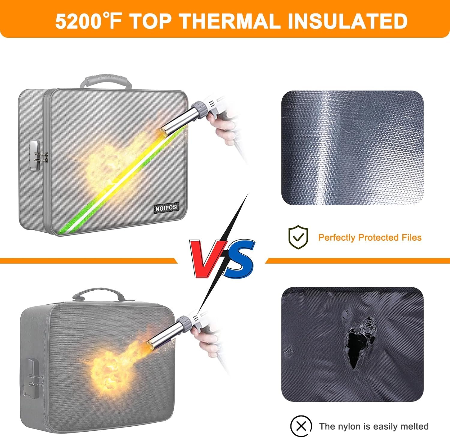 Noiposi Document Organizer with 5200℉ Heat Insulated,Waterproof and Fireproof Document Box,Portable Home Travel Safe Storage Box for Important Documents,File and Birth Certificate,Silver