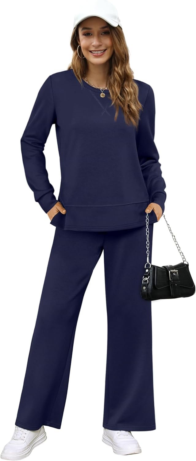 OFEEFAN Women’s 2 Piece Lounge Set Travel Airport Outfits Side Slit Tracksuit Wide Leg Loungewear Baggy Comfy Sweatsuit S-3XL