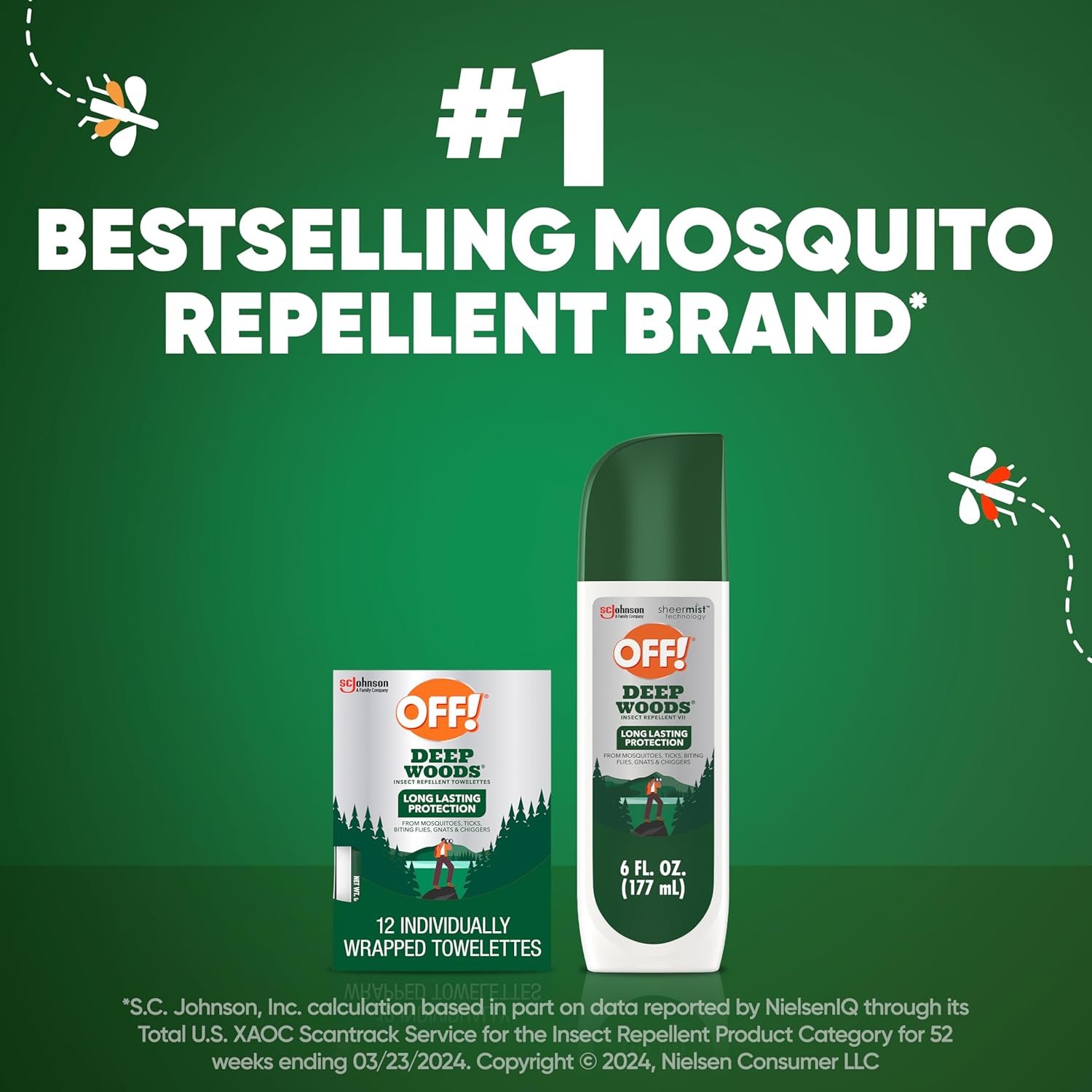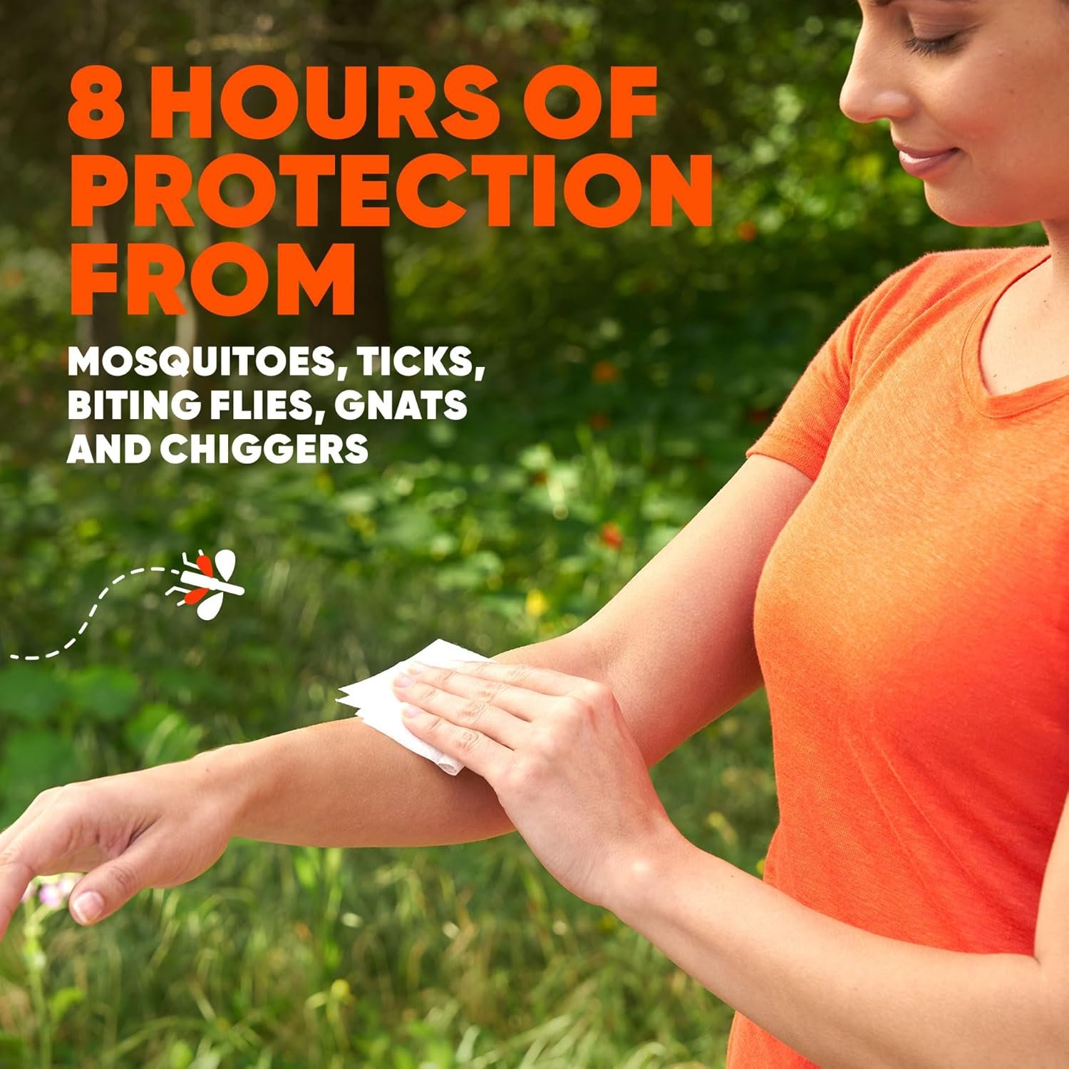 OFF! Deep Woods Sportsmen Towelettes are formulated with 25% DEET, and protect against ticks, biting flies, gnats, and chiggers, and mosquitoes that may carry the Zika, Dengue, or West Nile virus. Each box includes 12 individually wrapped Towelettes that are portable and easy to use. These mosquito wipes provides long-lasting protection for up to 8 hours, so that you can keep living life your way. Keep out of reach of children and pets. See the label for other precautions and usage directions.