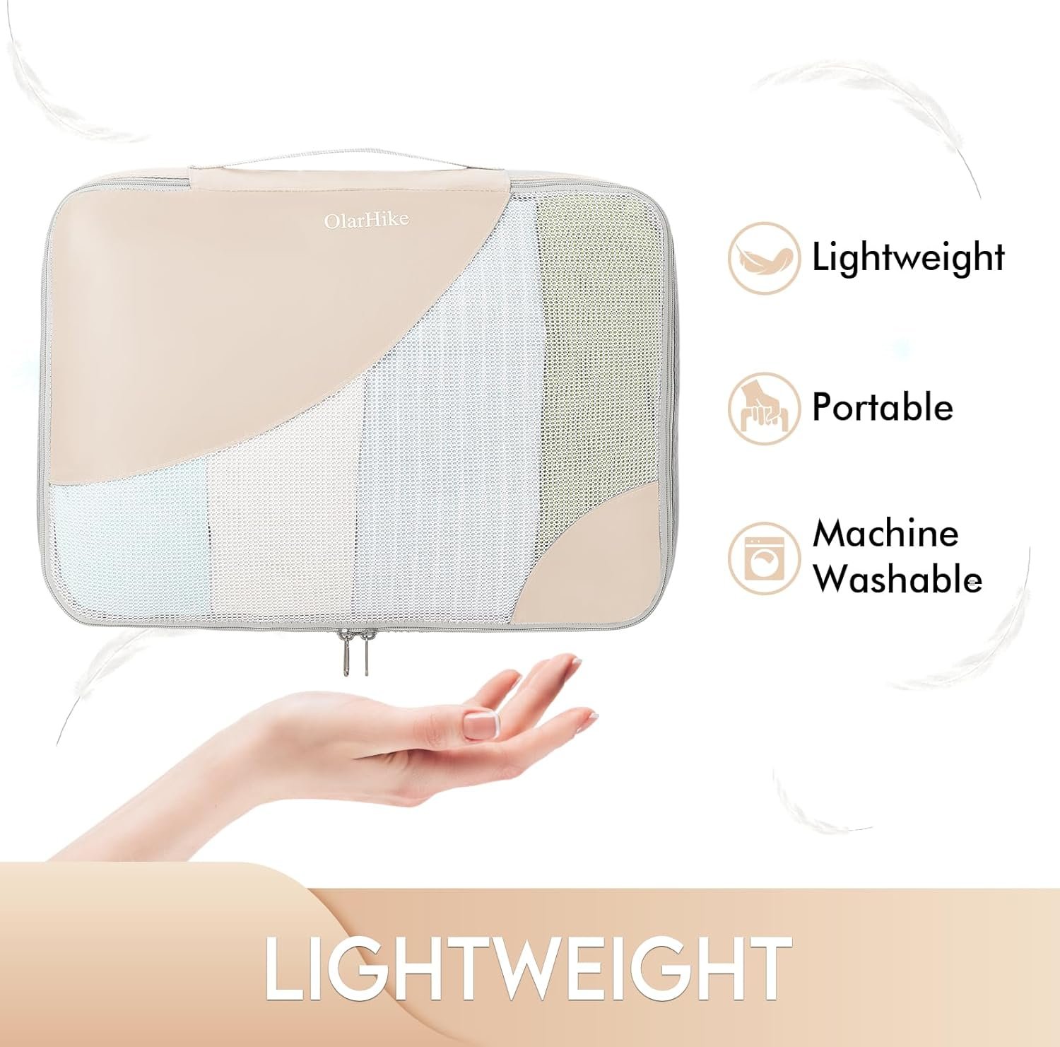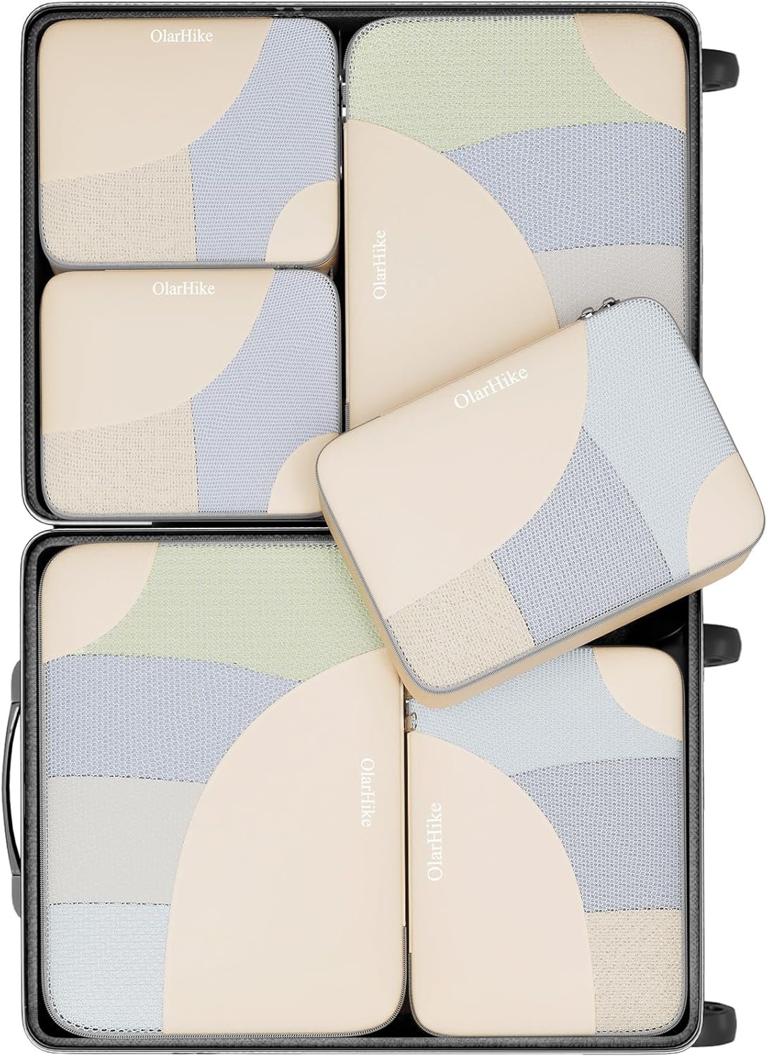 OlarHike 6 Set Packing Cubes for Travel, 3 Various Sizes(Large,Medium,Small), Luggage Organizer Bags for Travel Accessories & Essentials, Storage Cubes for Carry on Suitcases(Cream)