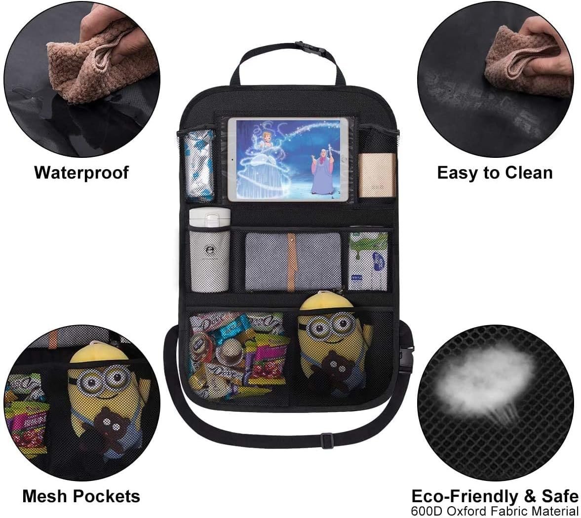 ONE PIX Backseat Car Organizer Mats Back Seat Organizers and Storage Bag with Touch Screen Tablet Holder for Kids Toddlers Seats, Travel Accessories, Road Trip Essentials (2PCS)