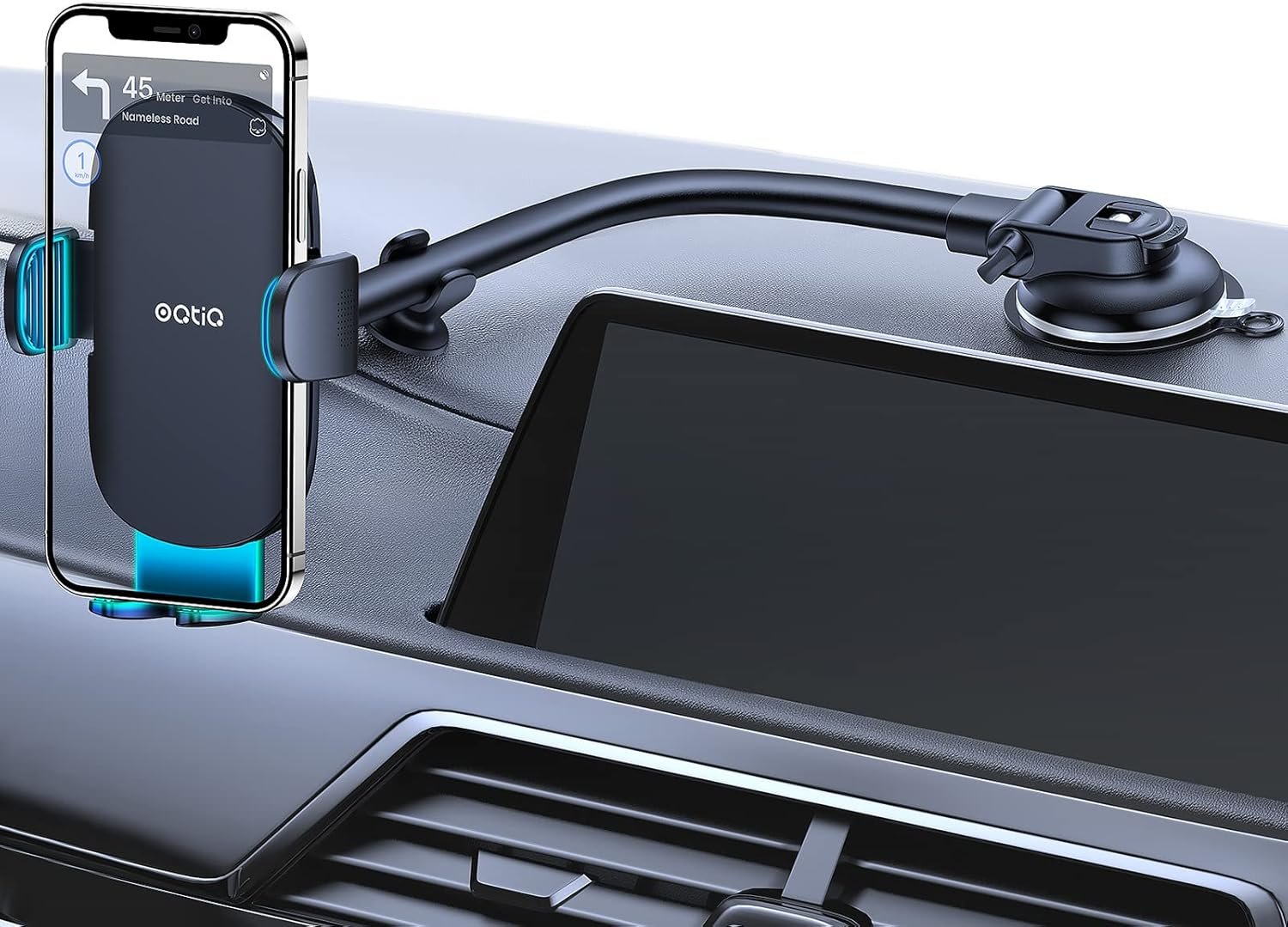 OQTIQ 13″ Gooseneck Car Phone Mount – Windshield & Dashboard Holder with Strong Suction Cup, Anti-Shake Stabilizer, One-Button Release – Compatible with iPhone 16/15/14 and All Smartphones