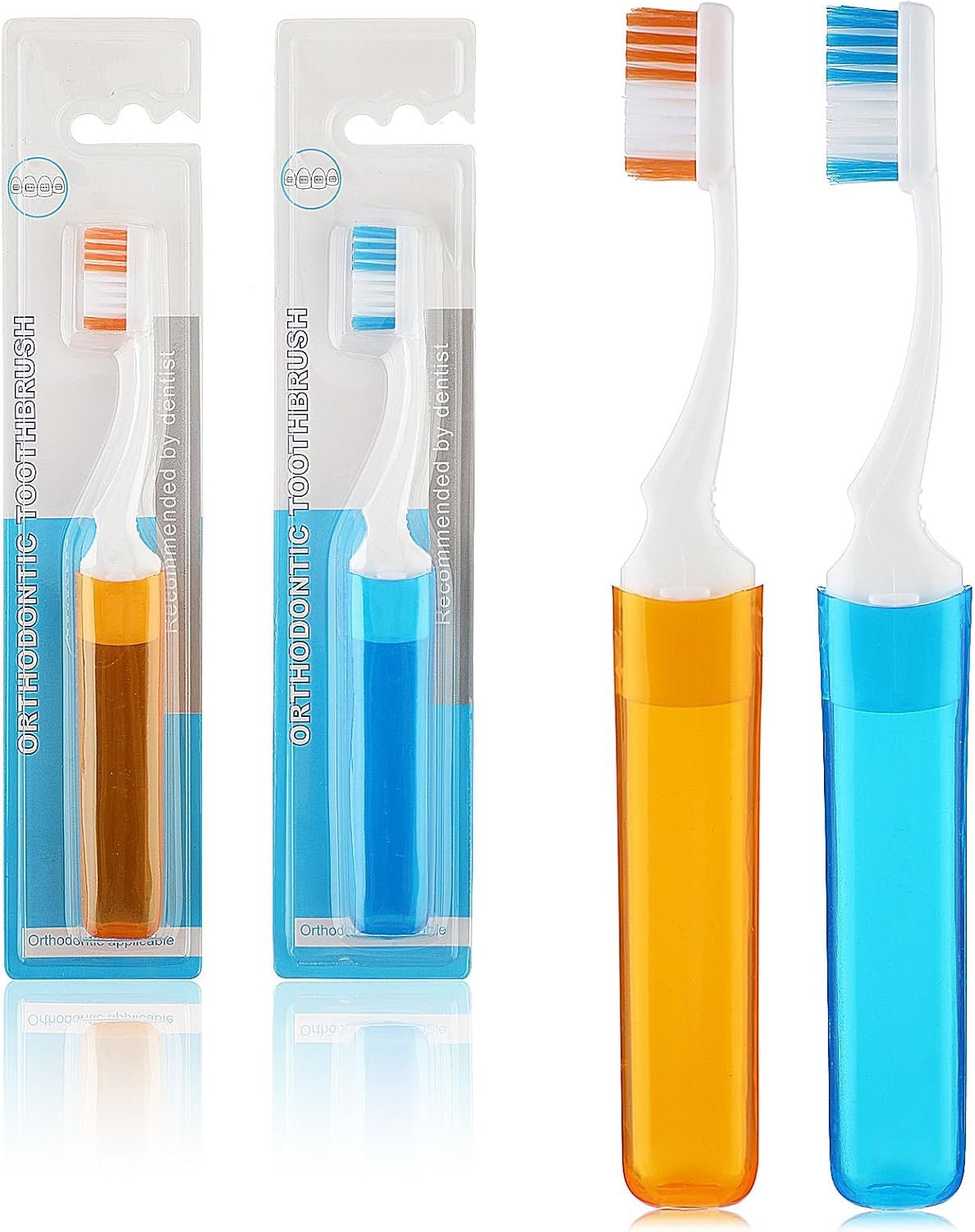 【Portable and Foldable】The travel tooth brush adopts collapsible design, you can fold the brush head and put inside to keep your travel toothbrush from all sorts of dirt and dust, and convenient for you to carry around and does not take up a lot of space