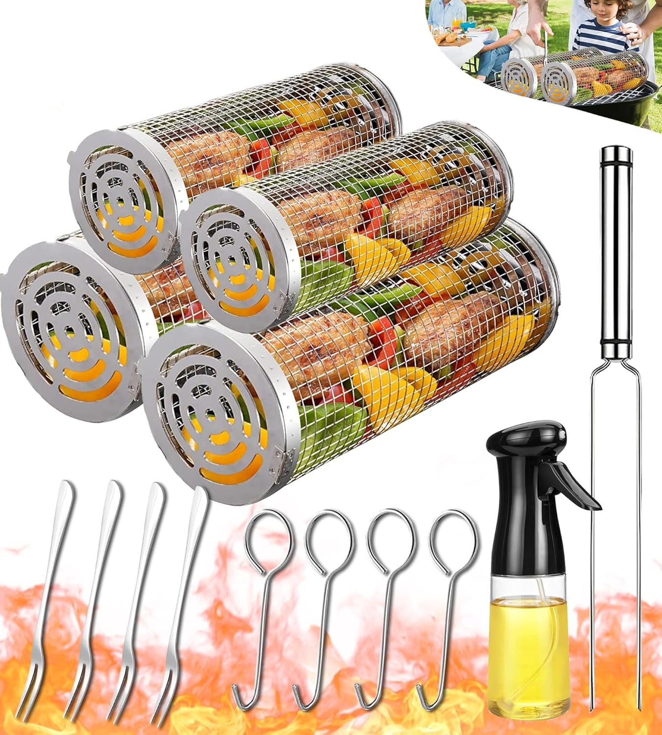 【Rolling Grilling Basket】:When you first use the Rolling Grilling Basket for your vegetables and meats, you will be amazed at the ease with which it allows your ingredients to cook evenly, rotates 360 degrees to ensure that food is evenly heated, making it easy to grill foods that you were afraid to try before.