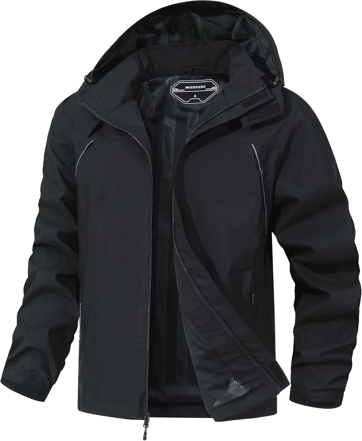 Outdoor Men’s Waterproof Raincoat Windbreaker Lightweight Rain Jacket with Detachable Hood