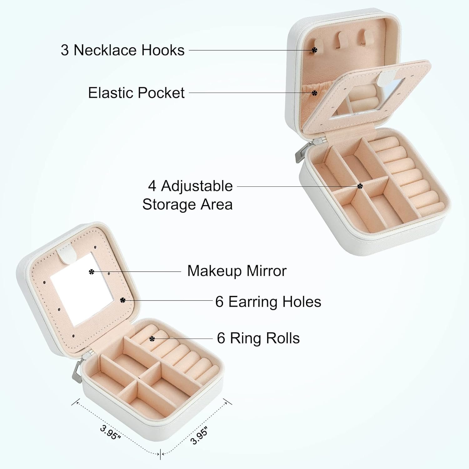 Our jewelry box is small but large capacity, which is both convenient and beautiful. You deserve a travel jewelry box that will make your travel easier and enhance your fashion taste.