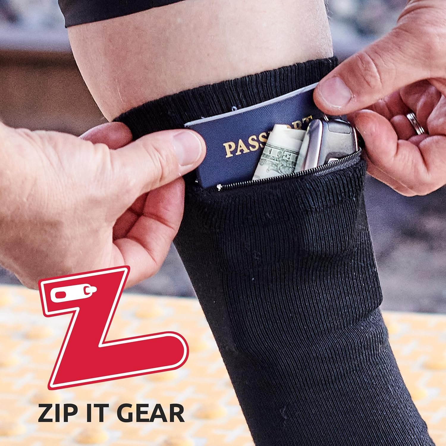 Created as an anti-pickpocket travel companion, Pocket Socks gives you the extra pocket you never knew you needed! Store essential items like earbuds, medication, snacks, ID, cards, passport, or cash on the go or while you travel! Pocket Socks provide safe zipper storage for anything you need quick access to or need to keep close. With so many functional designs, we have a pair for everyone!