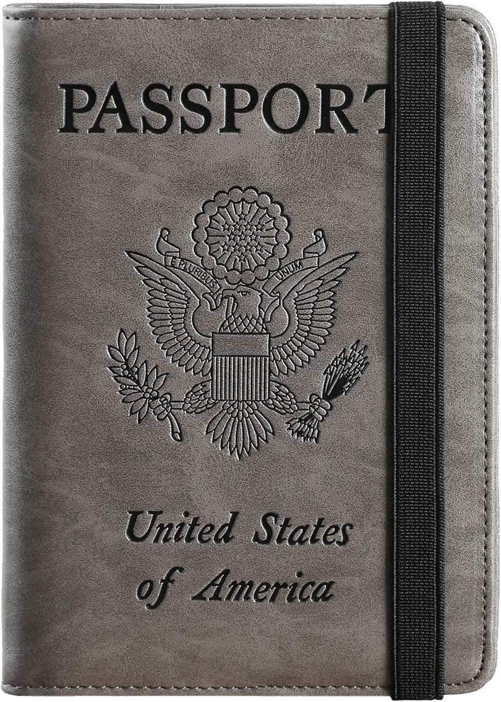Passport Holder Cover Wallet Travel Essentials RFID Blocking Leather Card Case International Must Haves Travel Accessories for Women Men(101#Coffee Grey)