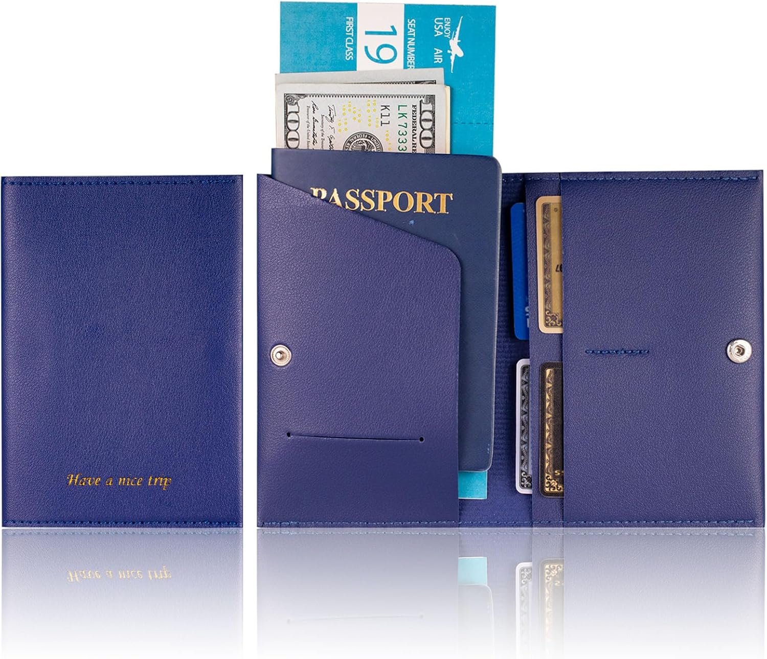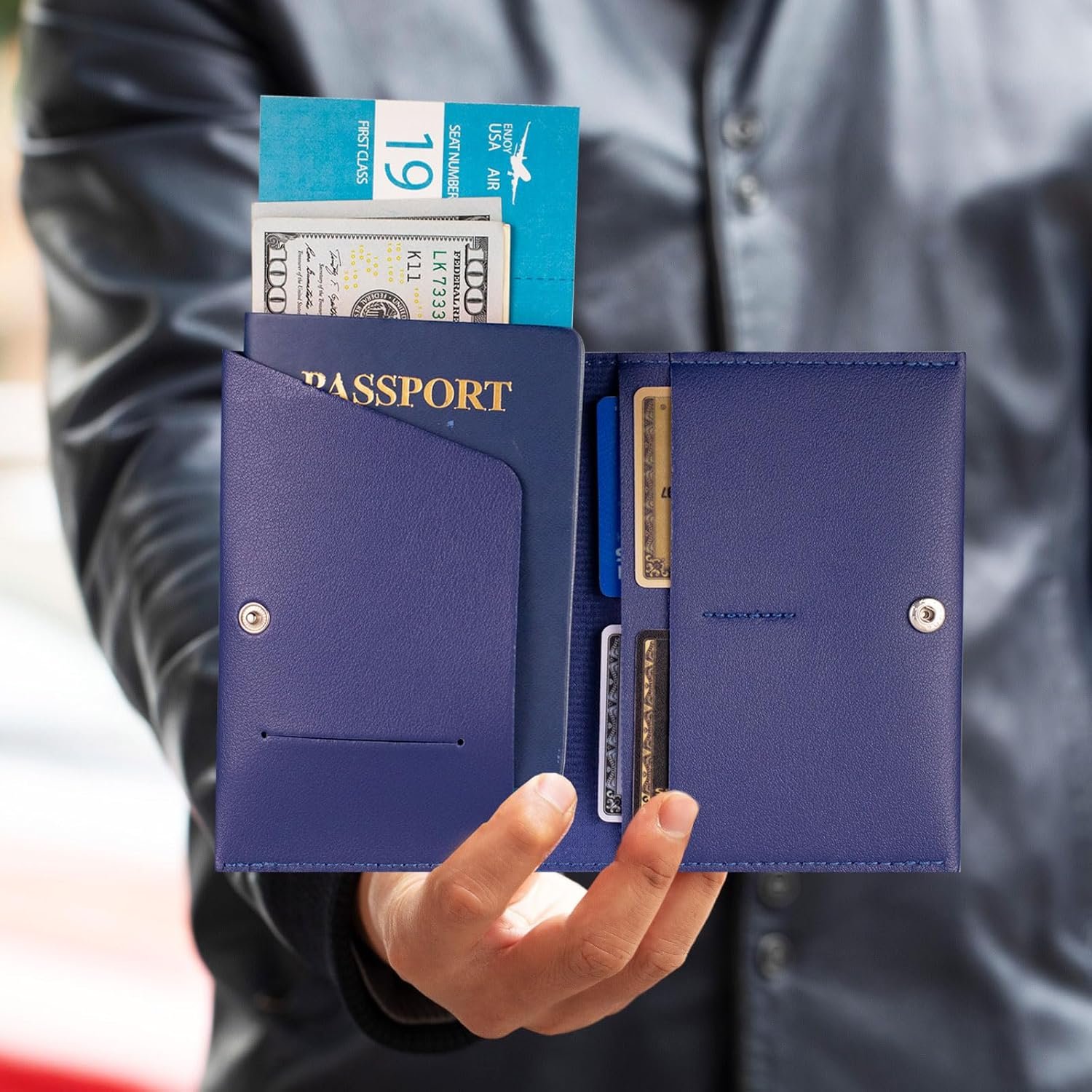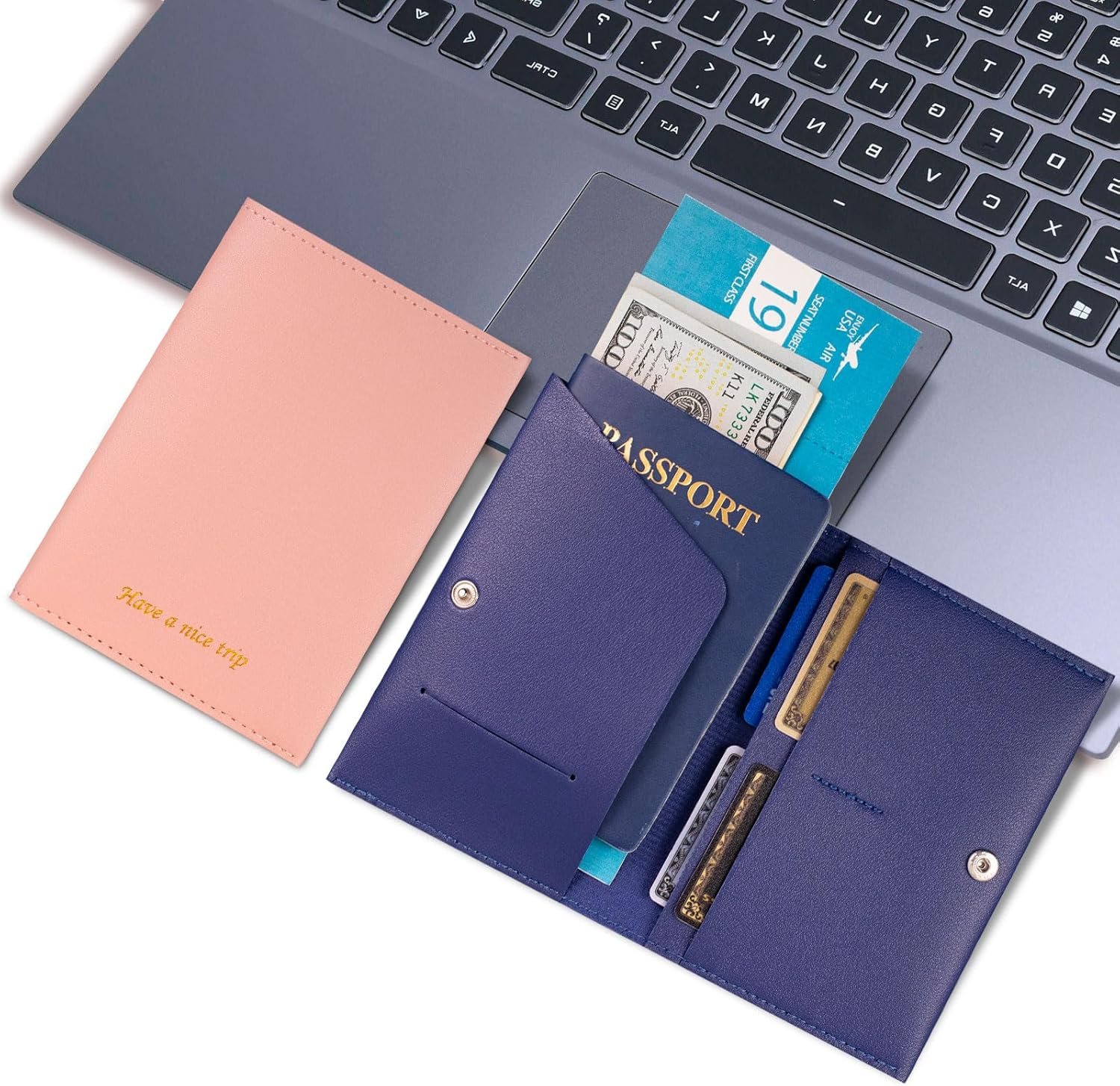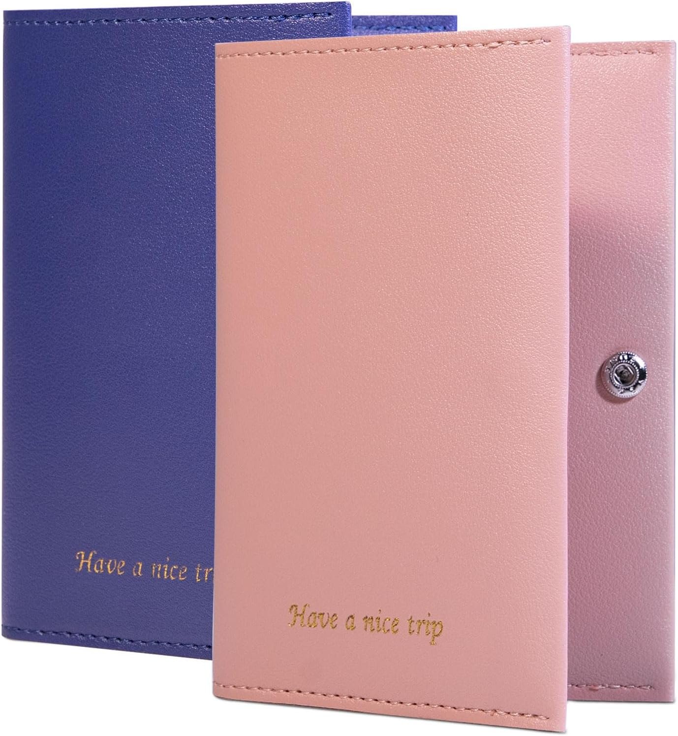Passport Holder for Travel Passport Wallet Cover Case for Women, Travel Wallet Essentials for Men and Family.Blue & Pink