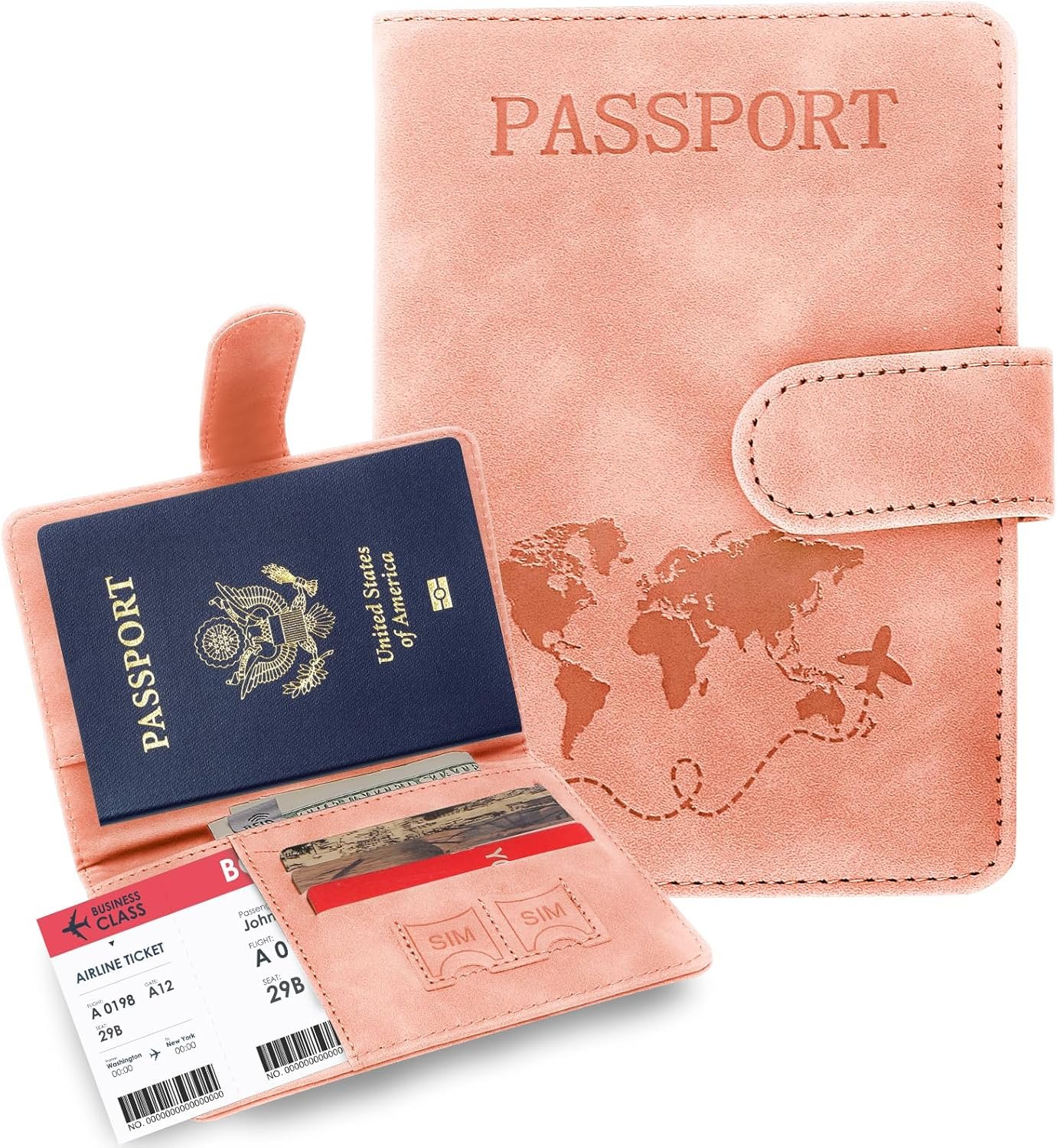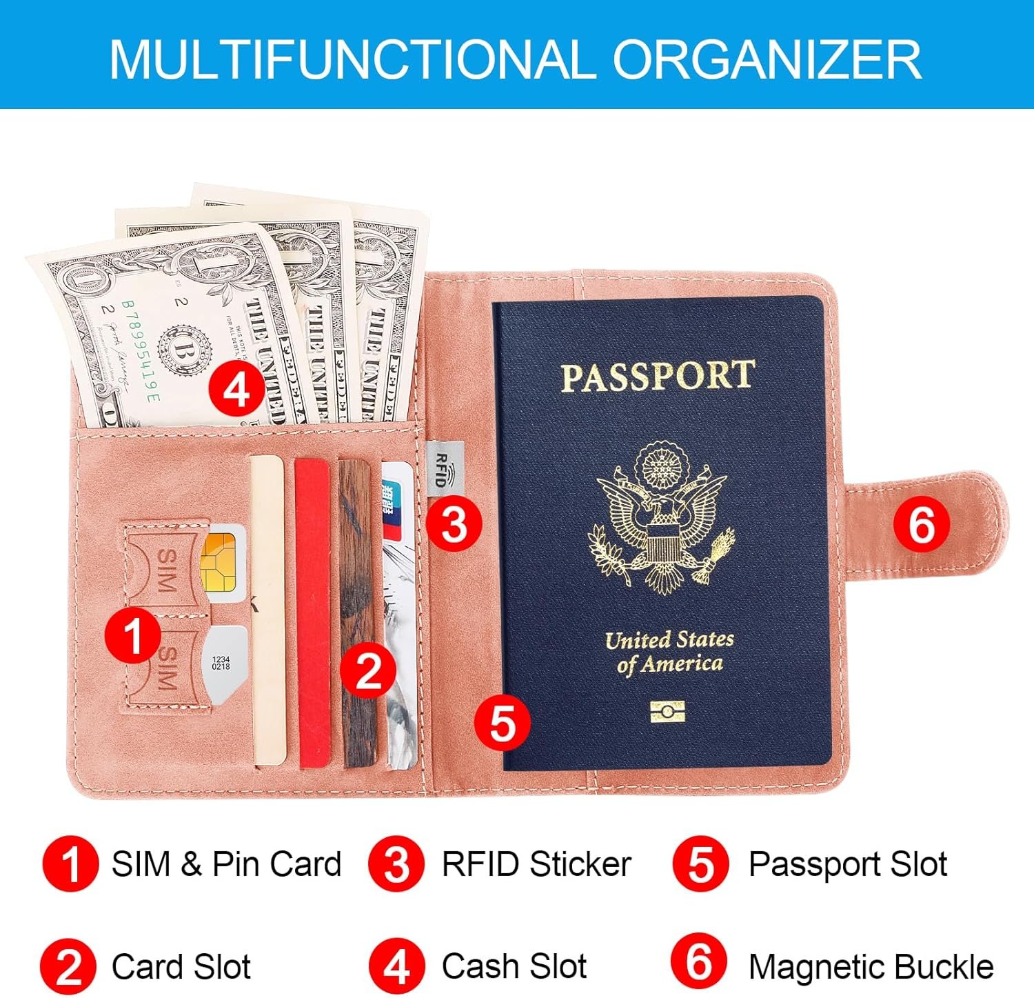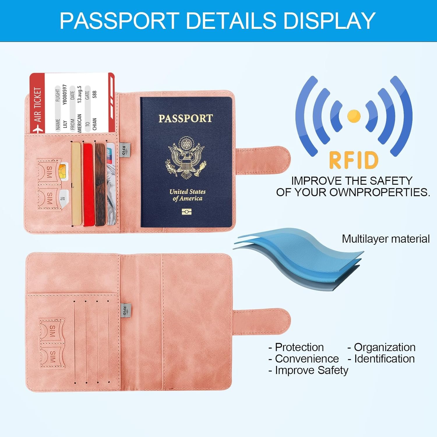 Passport Holders, RFID Blocking Credit Card Holder, PU Leather Passport Holders for Travel with Magnetic Buckle, Travel Must Haves Cruise Ship Essentials for Men, Women (Pink)