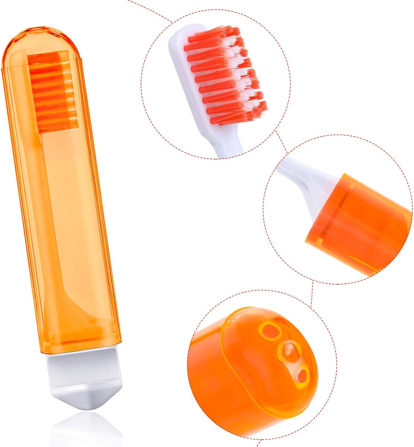 Individually stored toothbrushes: our travel size brushes can be stored individually and separately in the toothbrush case, a good way to keep these brushes in order and keep them in clean condition; The bottom of the toothbrush box is equipped with 2 ventilated small holes, which can let extra water out, promote ventilation, make the toothbrush dry quickly
