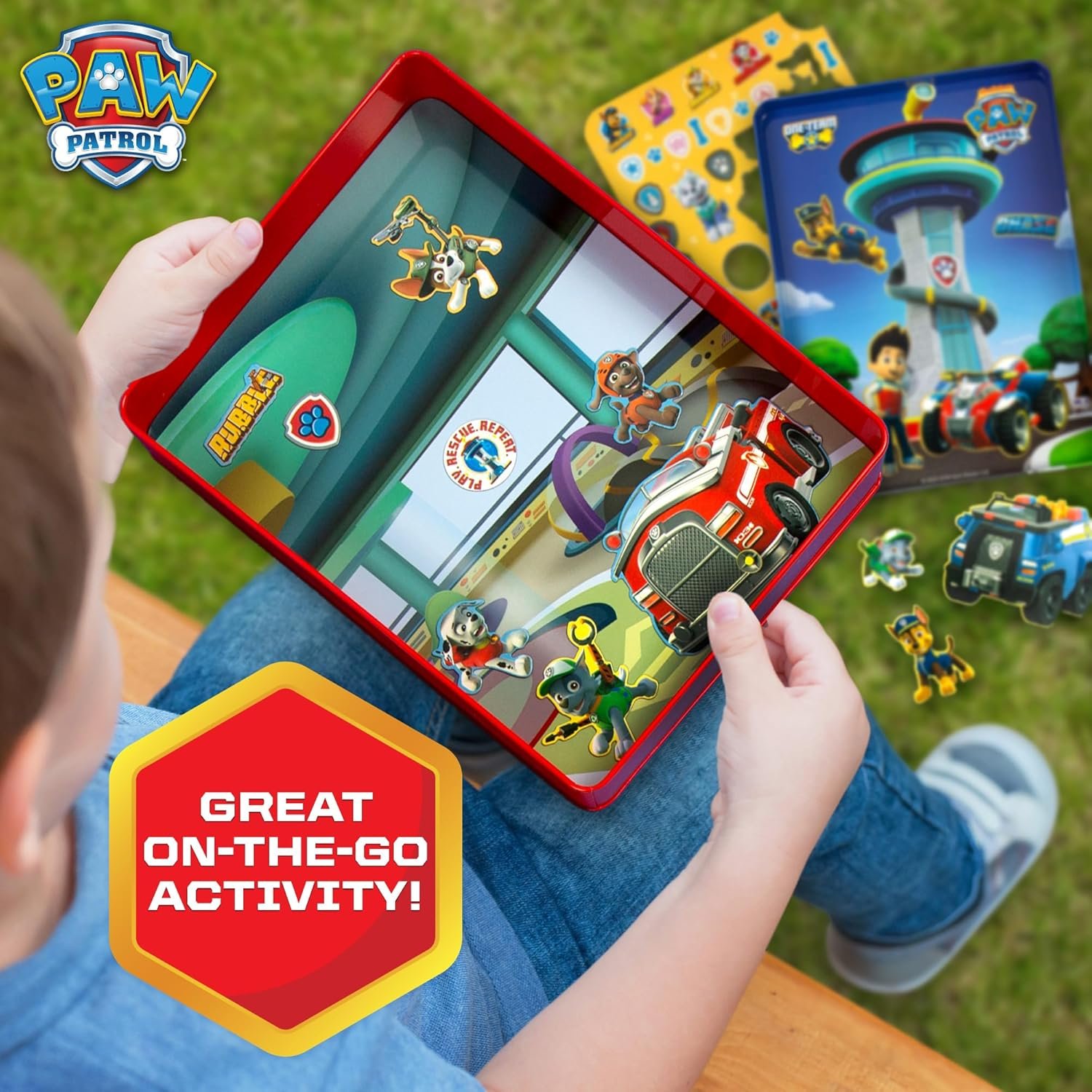 2-IN-1 STORAGE TIN & PLAY SPACE: Mix & match tons of different magnetic characters, vehicles, and accessories to tell your own Paw Patrol story, then keep them inside the case to recreate your adventures anytime & anywhere!