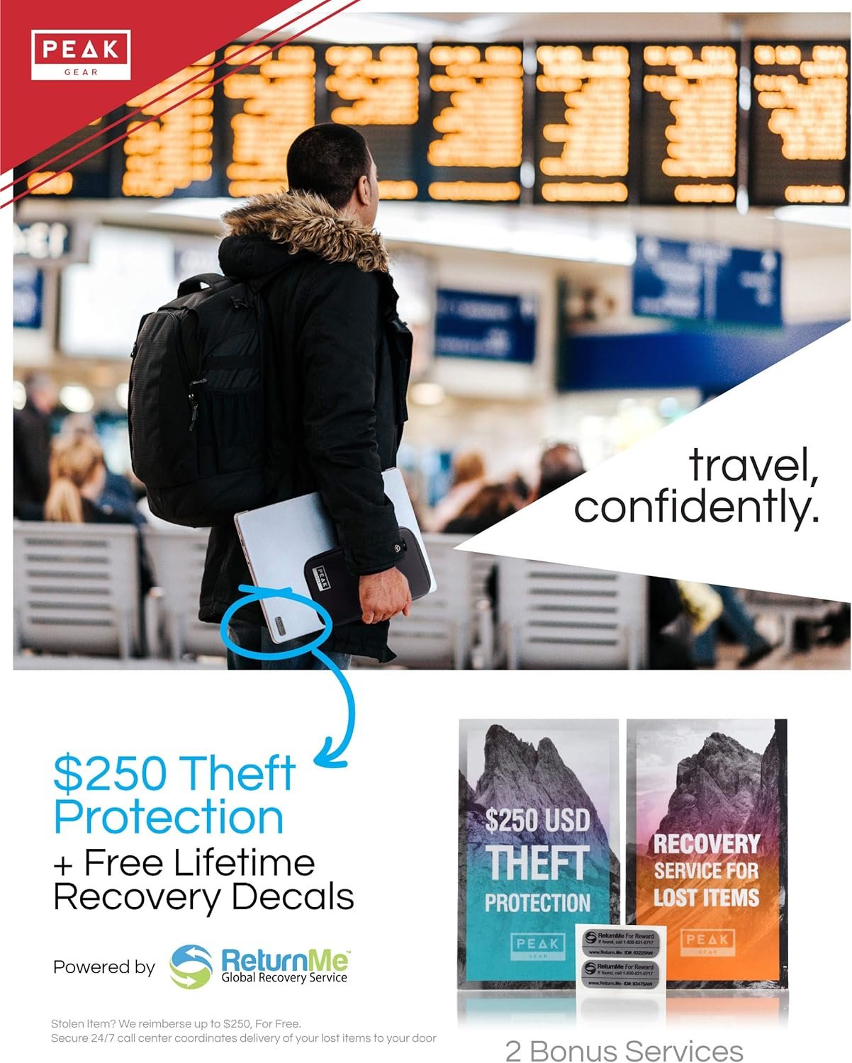 LIFETIME RECOVERY SERVICE FOR LOST ITEMS – We’ve partnered with ReturnMe, the world’s largest lost & found company, to give you 2 FREE Global Recovery Decals ($8 value). Stick on your phone, passport, camera, etc. and their 24/7 call center will help return lost items from anywhere in the world. As a Peak Gear customer, the Bronze service is FREE FOR LIFE!