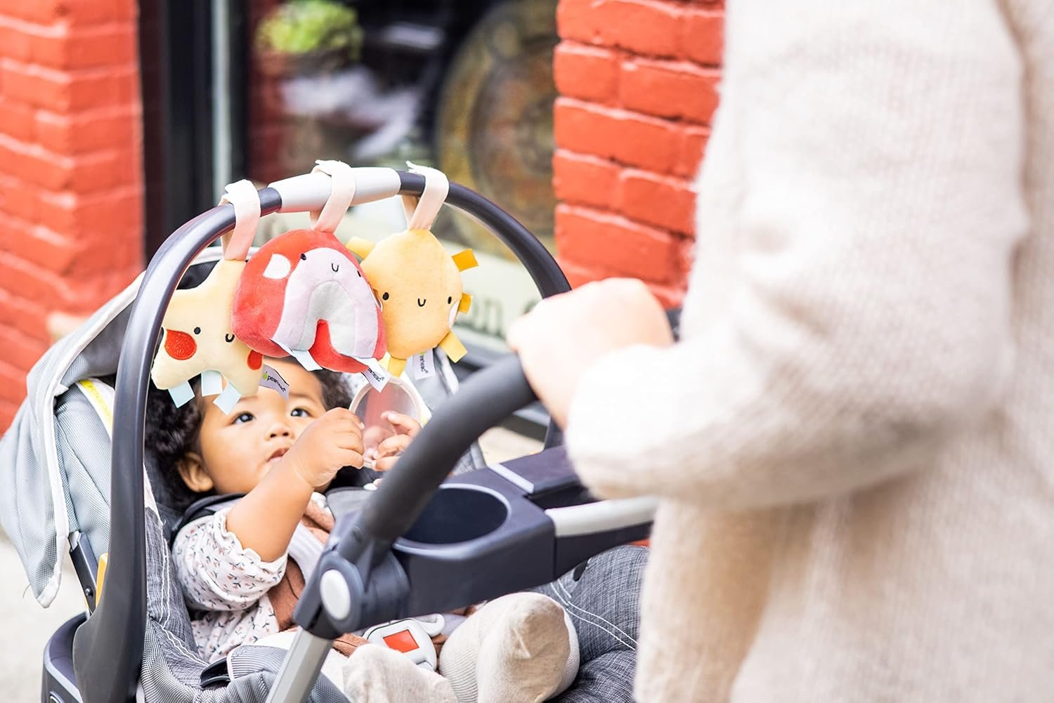 These fun and colorful sky themed baby stroller toys are the perfect baby travel accessories for parents who want to make sure their little one always has a fun and entertaining play toy while our and about!
