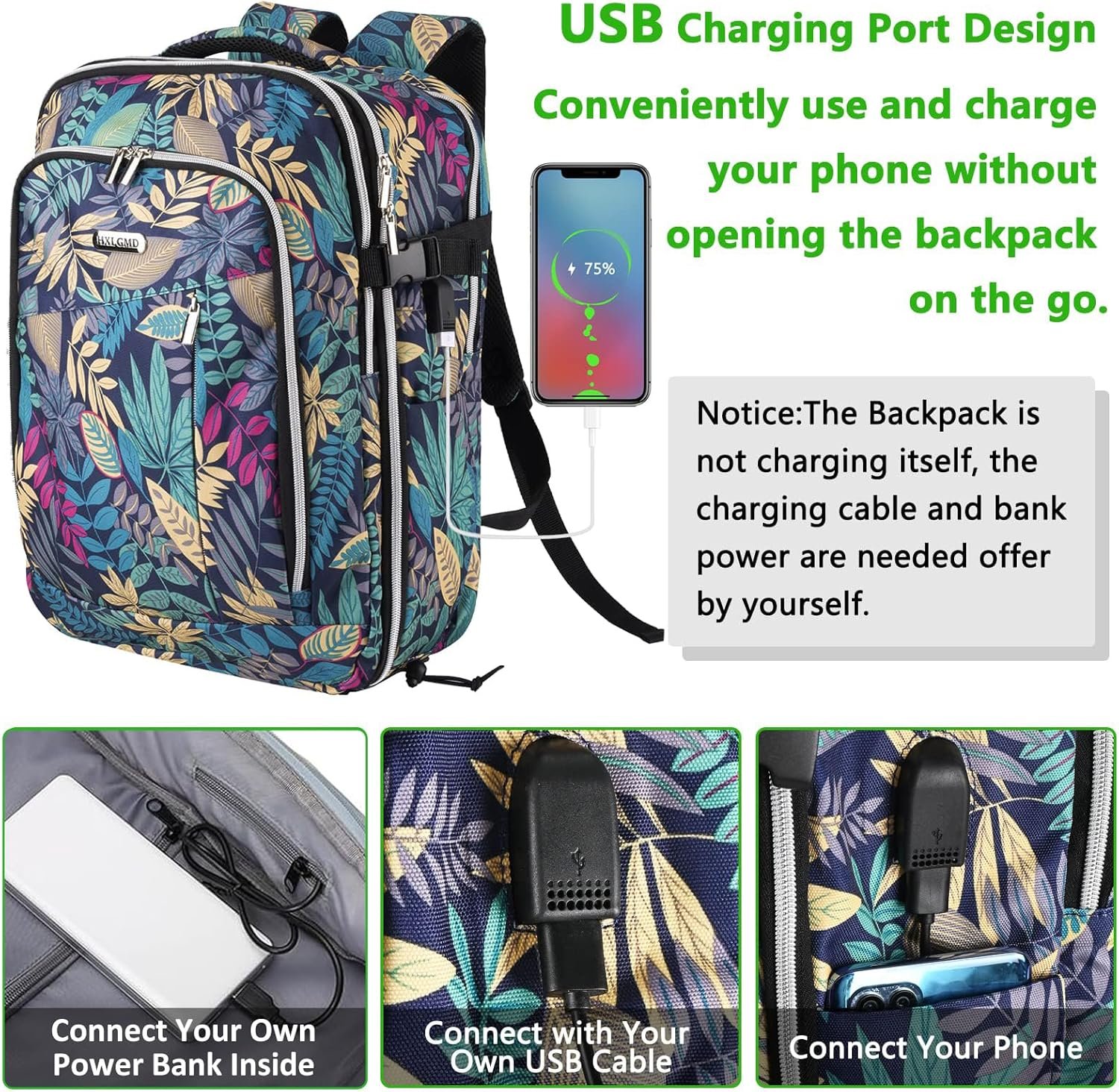 ✈User Friendly Design: You can charge the phone via the built-in charging port so that you don’t need to take the portable charger all the time. Just keep your phone powered up on the go. The backpack with luggage strap is easy to transport.