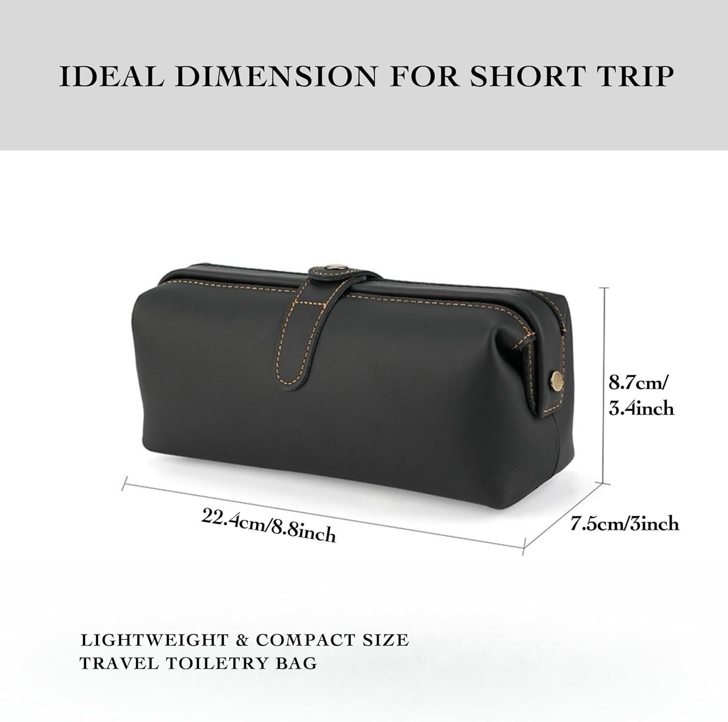 【Multi-Functional】The small leather toiletry bag is the best choice for your short travel or business trip. Since its ideal dimension (8.8*3*3.4inch), it can not only be used as a toiletry travel bag, but also as a small travel cosmetic bag, shaving bag for men, personal organizer handbag, travel accessories storage organizers. Just carry this personalized mens leather dopp kit and enjoy a wonderful short trip.