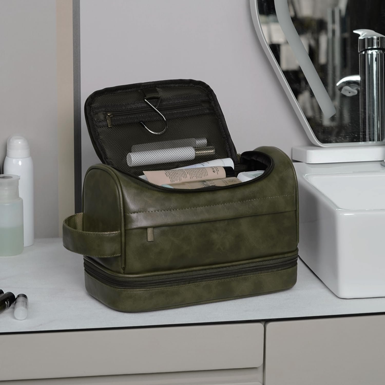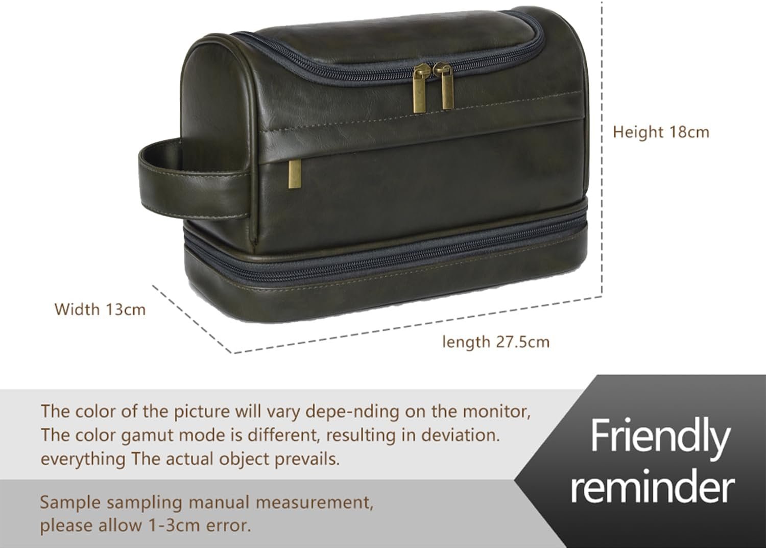 Size: With dimensions of 27.5cm *13cm *18cm(L*W*H)/10.8*5.1*7inch, this leather toiletry bag for men is the ideal size to accommodate all your travel essentials while fitting perfectly in your luggage