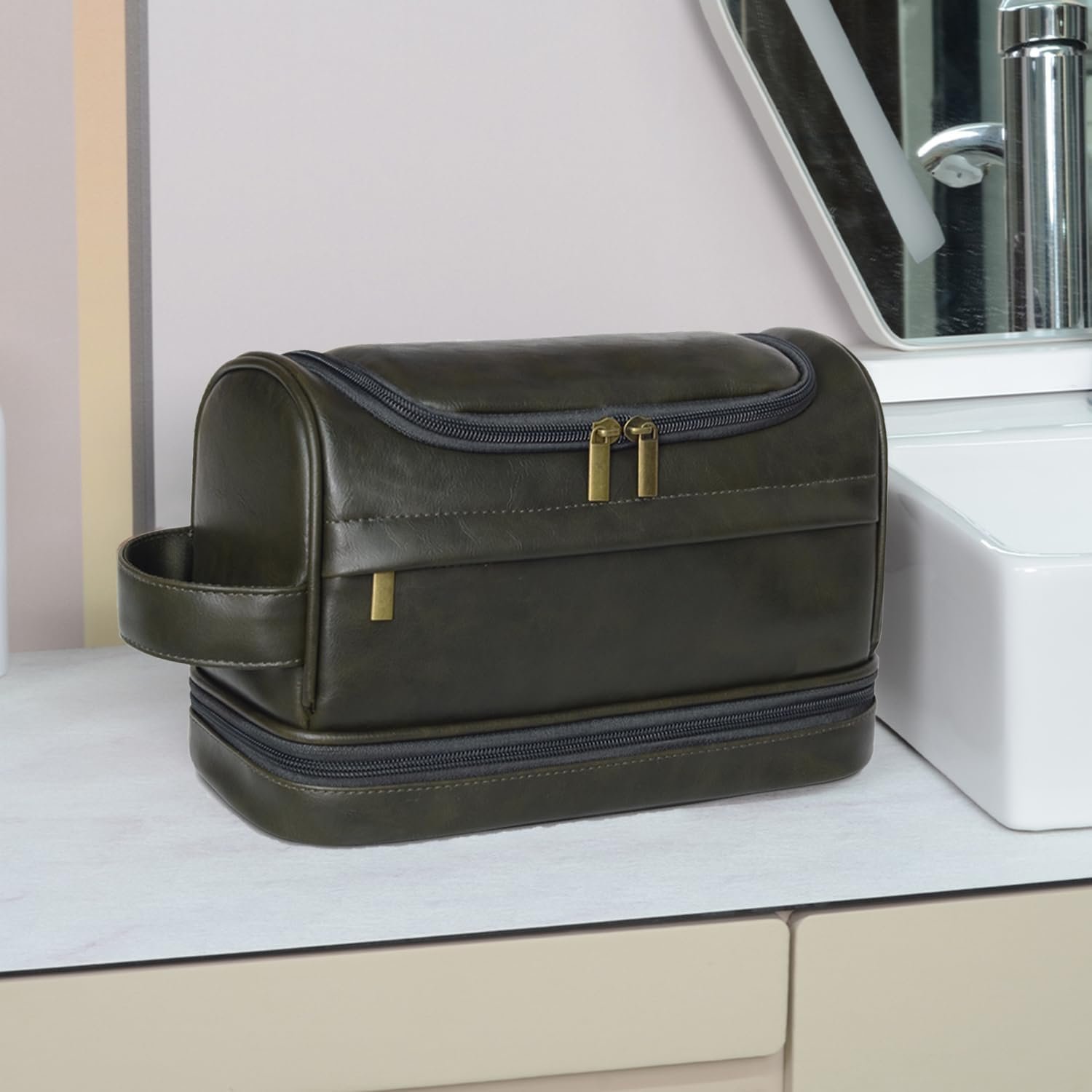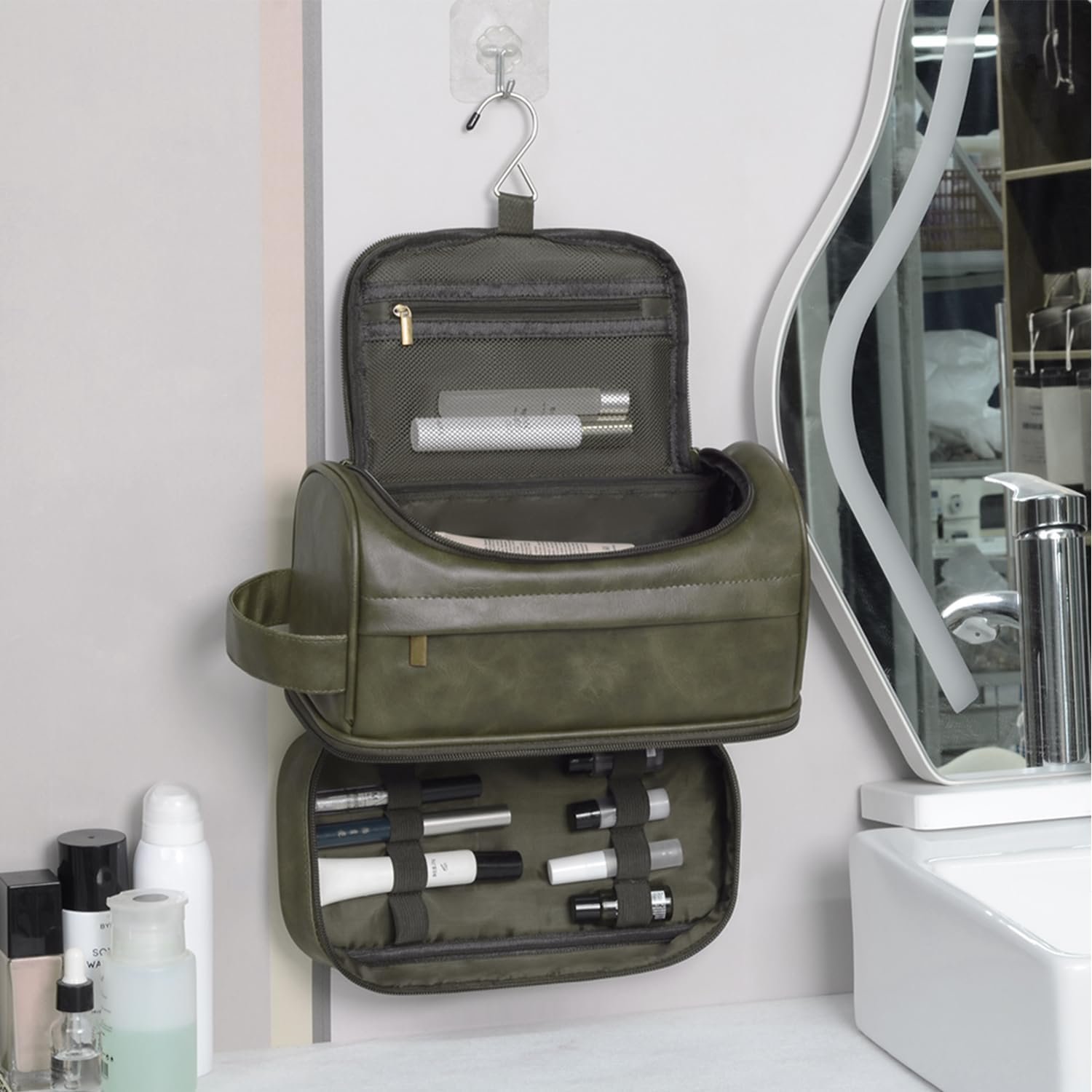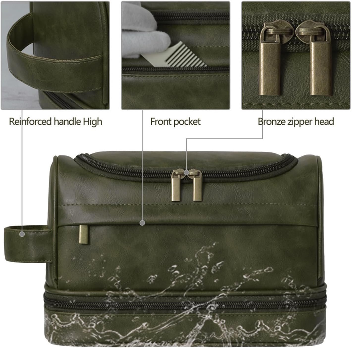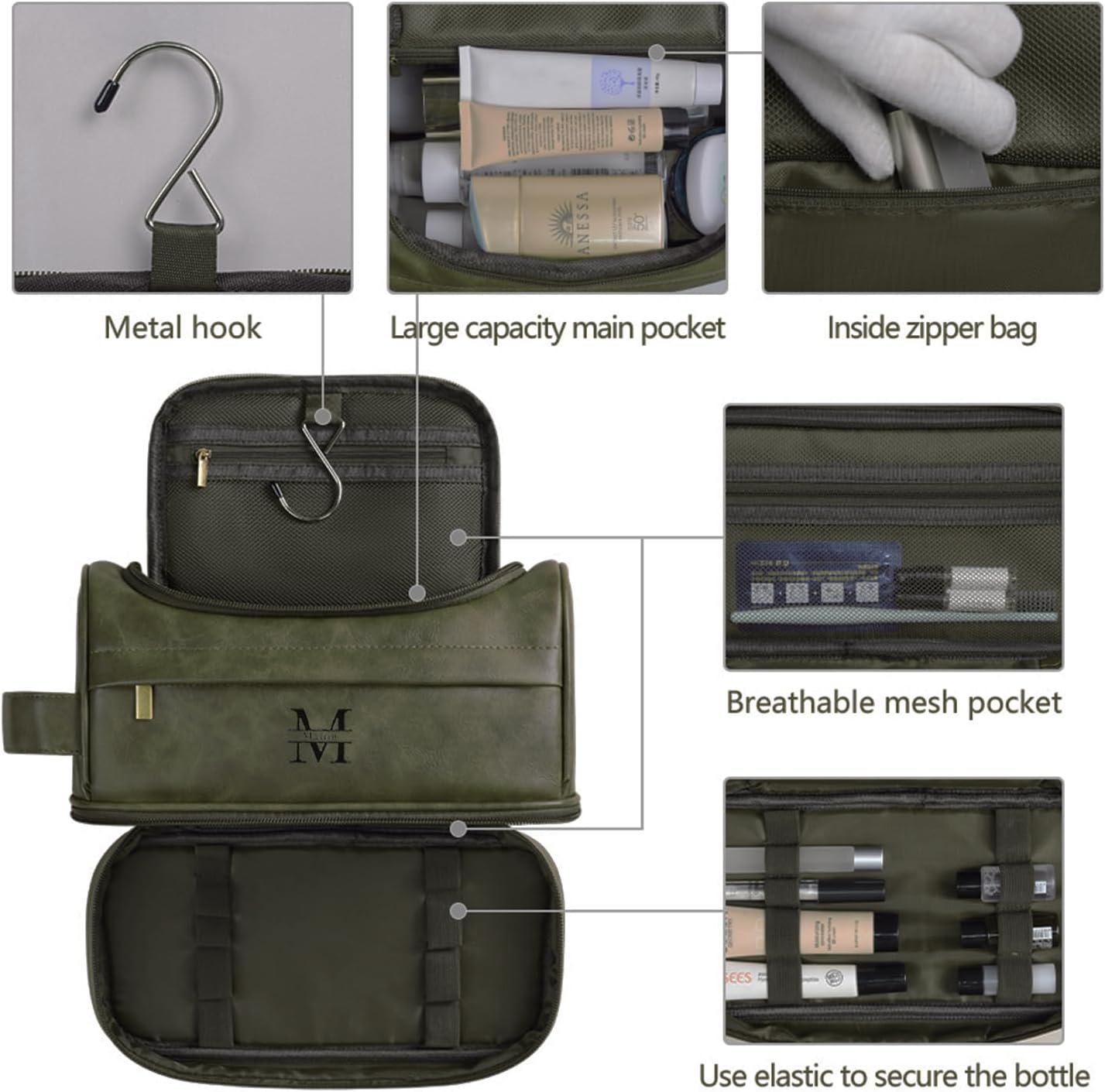 Personalized Toiletry Bag for Men and Women Leather Toiletry Organizer Shaving Dopp Kit Travel Bathroom Bag Cosmetic Pouch(DarkGreen)