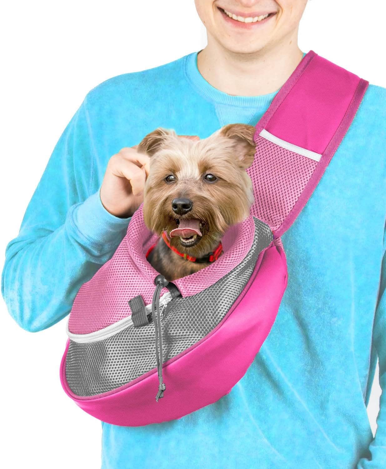 🐶 SOFT, PADDED MATERIALS – This crossbody dog sling distributes weight evenly with wide, padded straps. Wear it on your back or chest and adjust the length for a comfortable fit. Breathable mesh keeps your dog cool and comfortable.