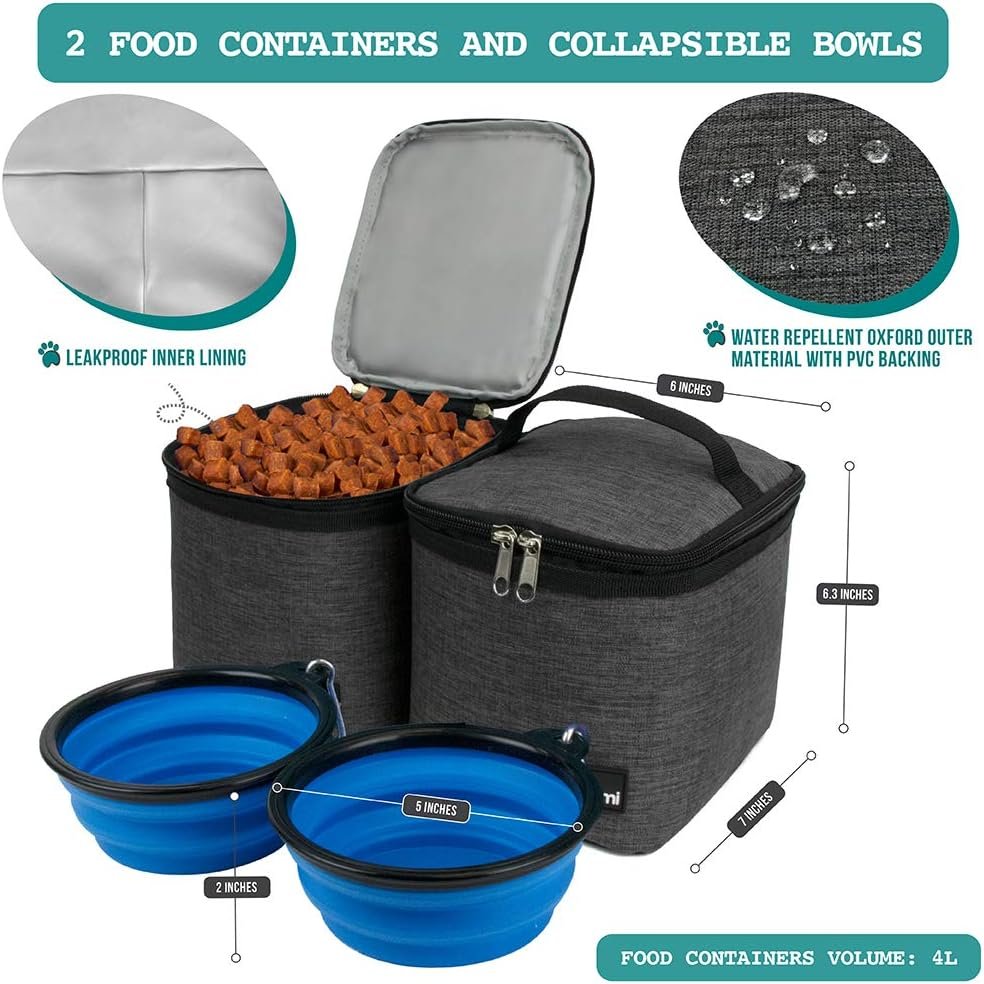 PET SUPPLIES DOG DIAPER BAG: The dog travel backpack helps dog owners easily organize treats, kibbles, toys, leashes, and all other pet accessories and training supplies. The doggie traveling backpack comes with two food containers and two collapsible silicone dog bowls, ensuring that your pet is well-fed and hydrated during your hiking camping trip. Each food container has a 4L capacity, making it a camping gear must have for all small, medium, and large size dogs and cats.