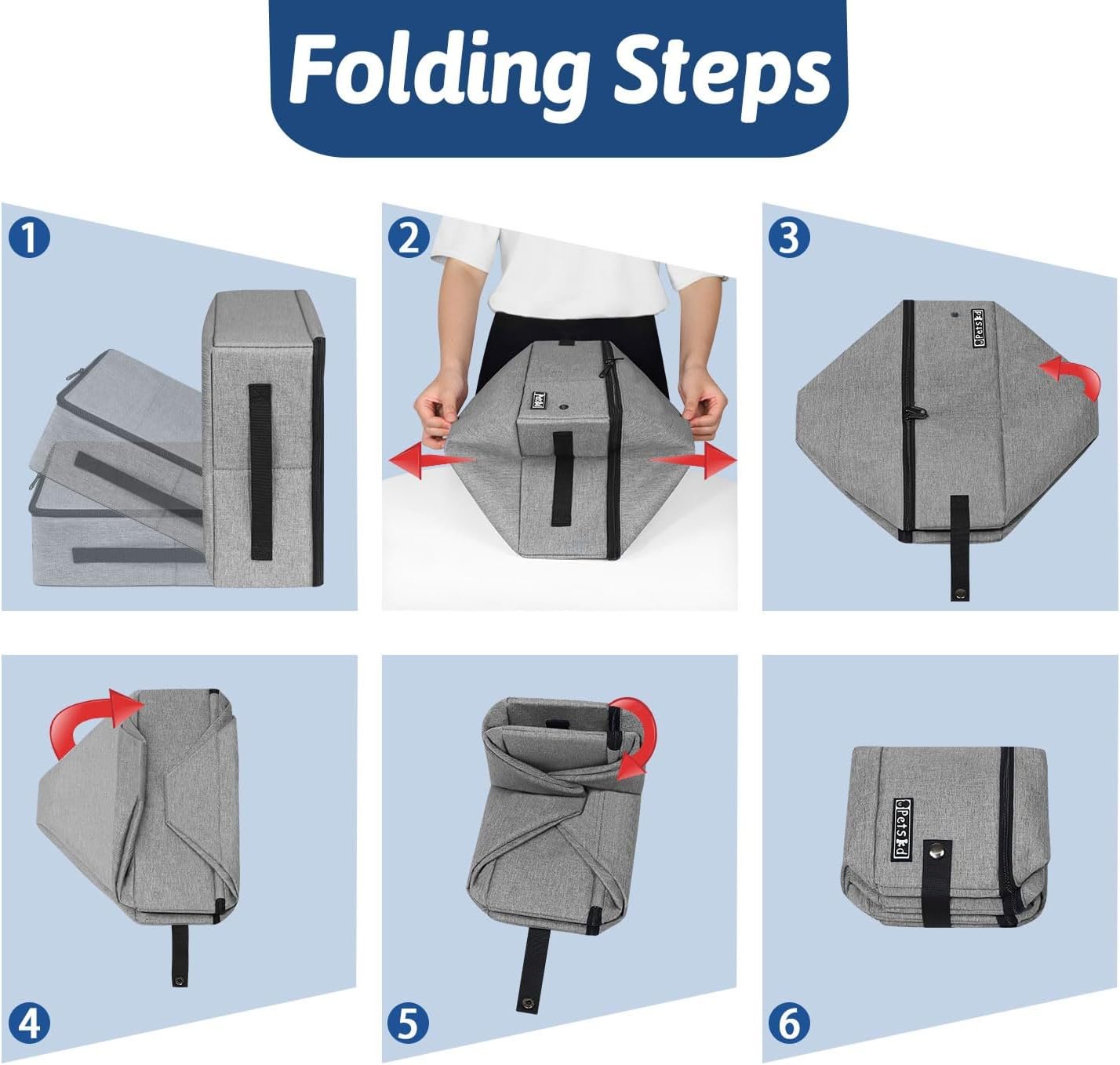 [Easy to carry]Special double handle design provides more carrying options, the travel kitty litter box folding is also very simple, and the folded litter box can be carried in a suitcase or handheld. The large space of the cat litter box with a lid can even be used as a kitty travel bag to put some pet supplies(pet treats, tissue, water bottle…), it will be convenient and multifunctional!