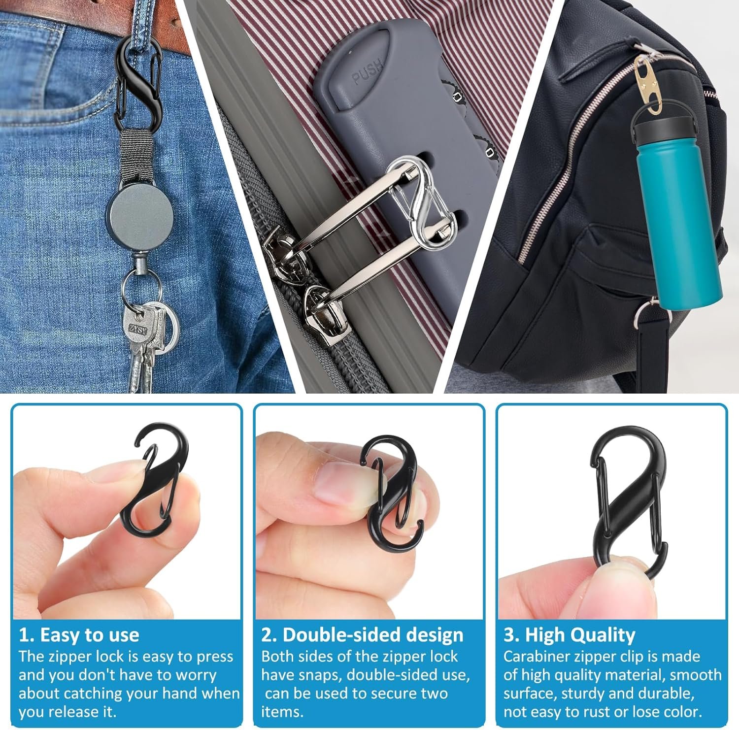 Carabiner zipper clip is made of high quality material, smooth surface, sturdy and durable, not easy to rust or lose color.
