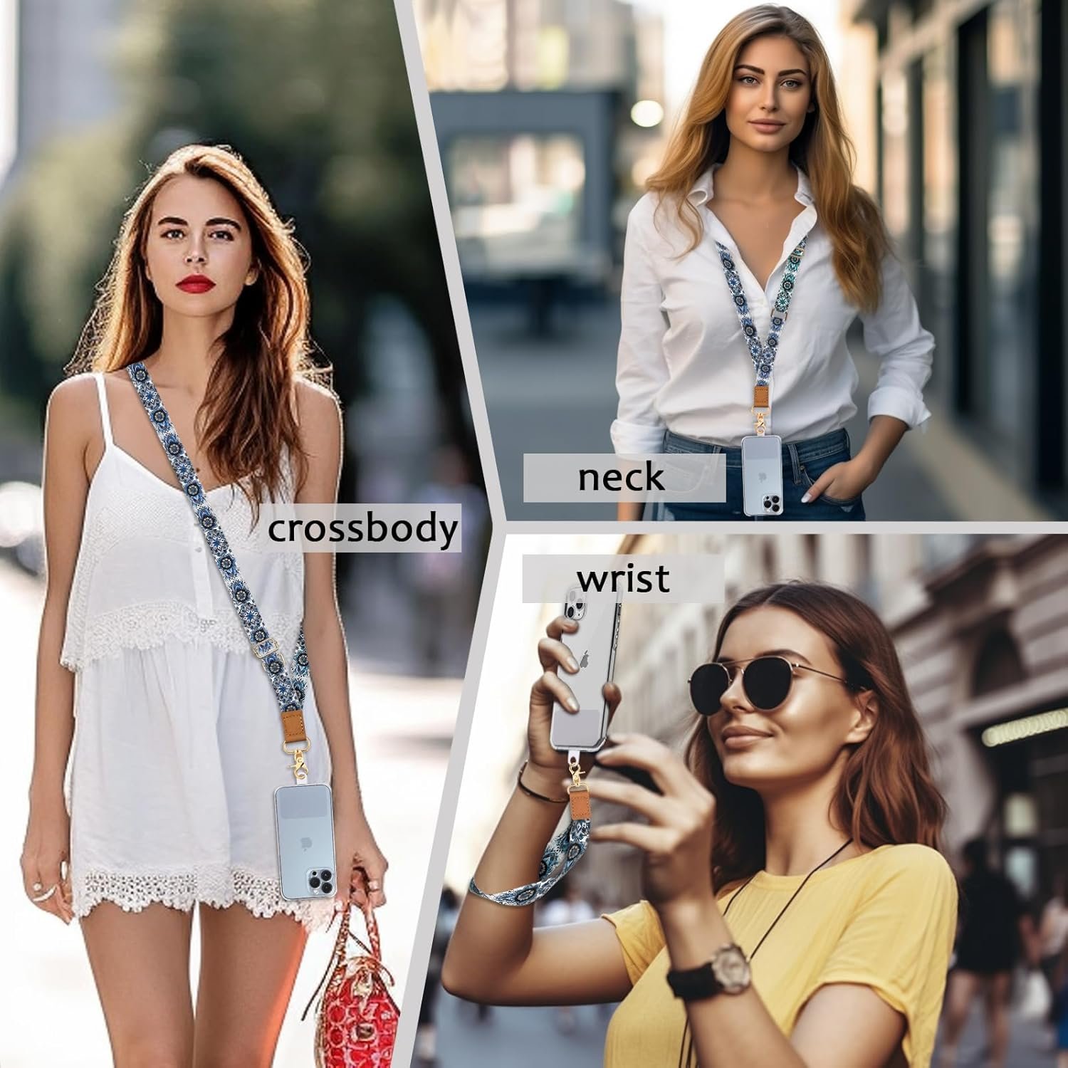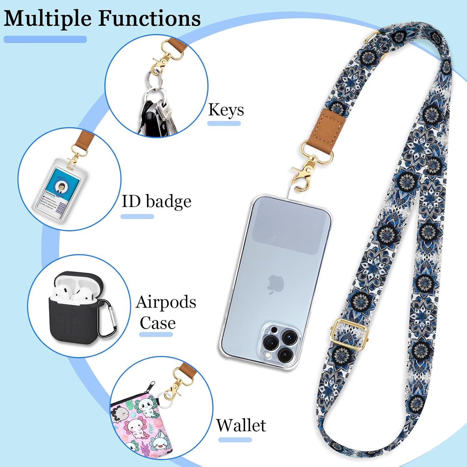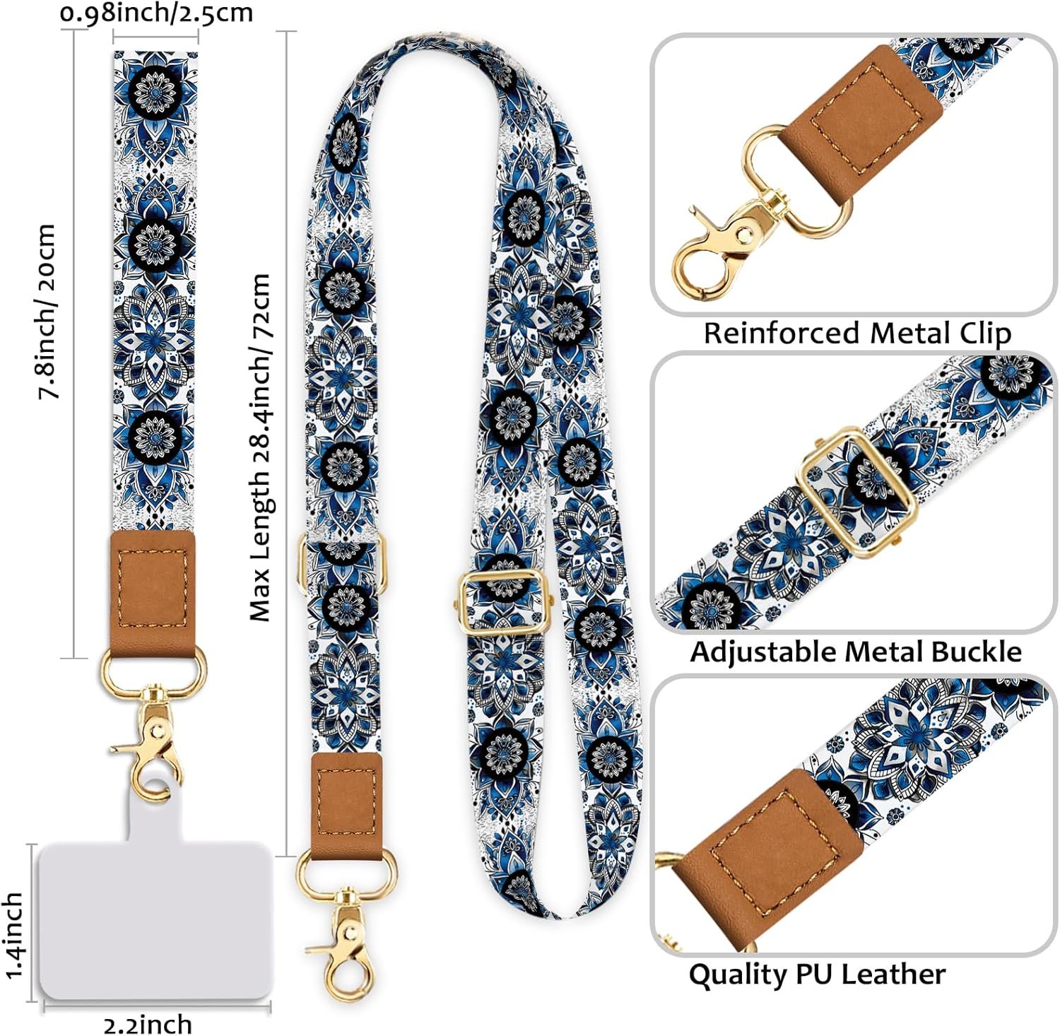 Phone Lanyard Crossbody Strap, Boho Bohemian Cell Phone Lanyards for around the Neck Wristlet Wrist Strap Adjustable for Key Case ID Badges Accessories Travel Essentials