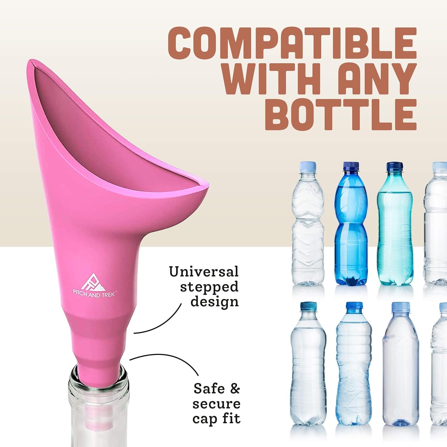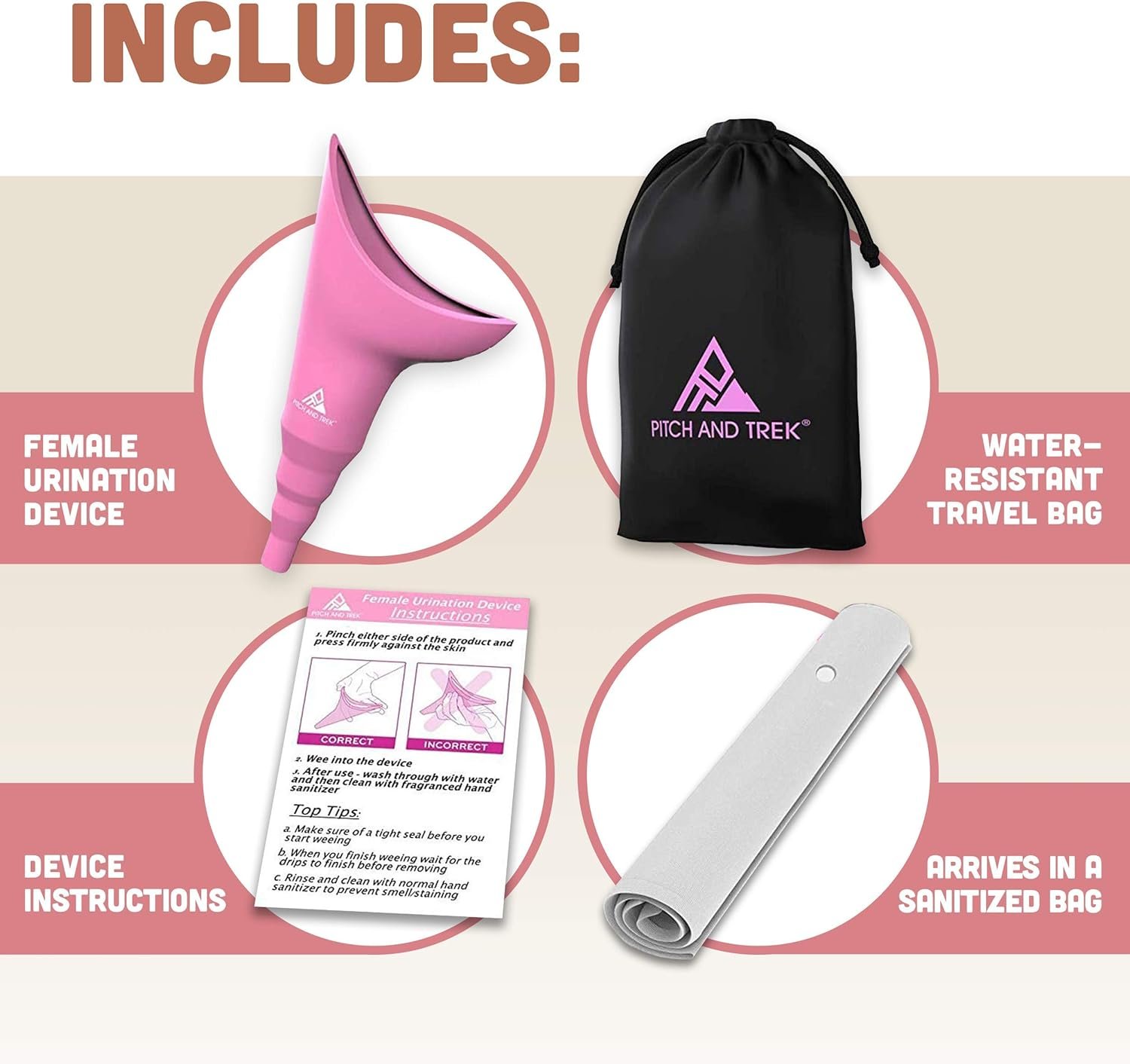 Pitch and Trek Female Urination Device, Silicone Standing Pee Funnel w/Discreet Carry Bag, for Travel, Road Trip, Festival, Camping & Hiking Gear Essentials for Women, Pink
