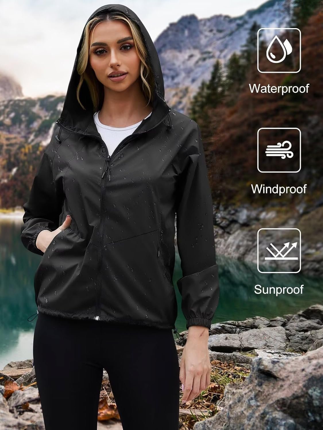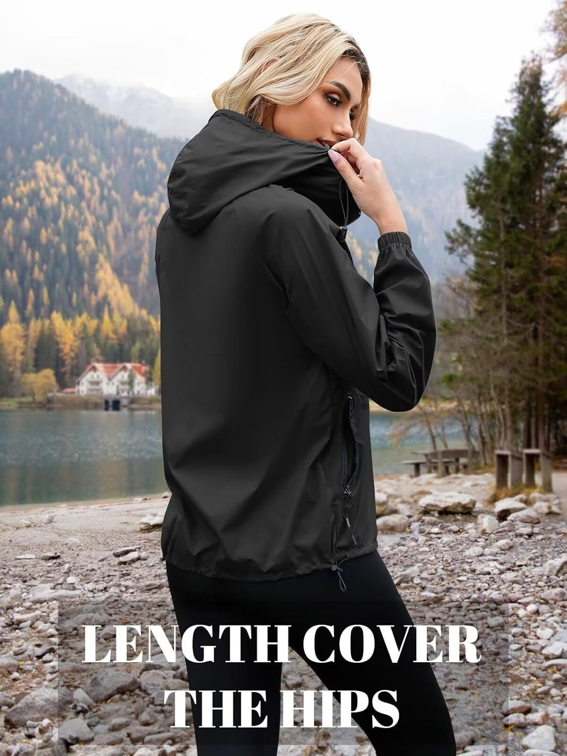 Rain Jacket for Women Waterproof Raincoat with Hood Lightweight Packable Windbreaker Jackets