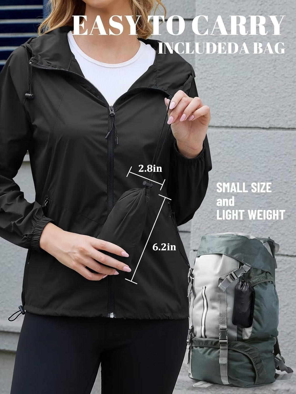PITINAN Rain Jacket Women Lightweight Jacket With Hood Waterproof Packable Raincoat with Pockets S-XXL