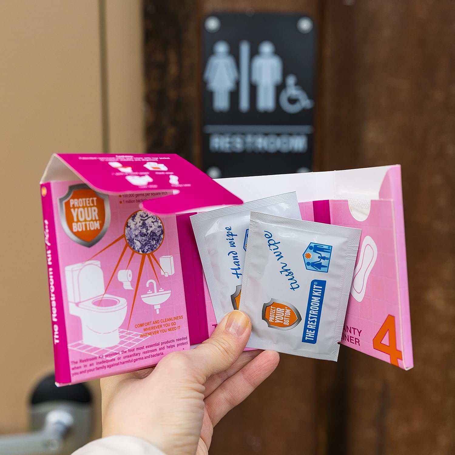 Clean, Convenient, and Discreet: Individually wrapped for easy use, The Restroom Kit Plus ensures a fresh, hygienic experience in any location.