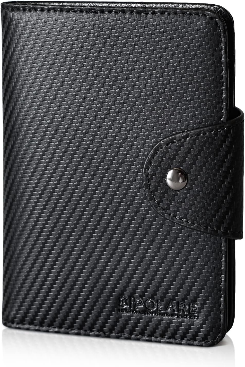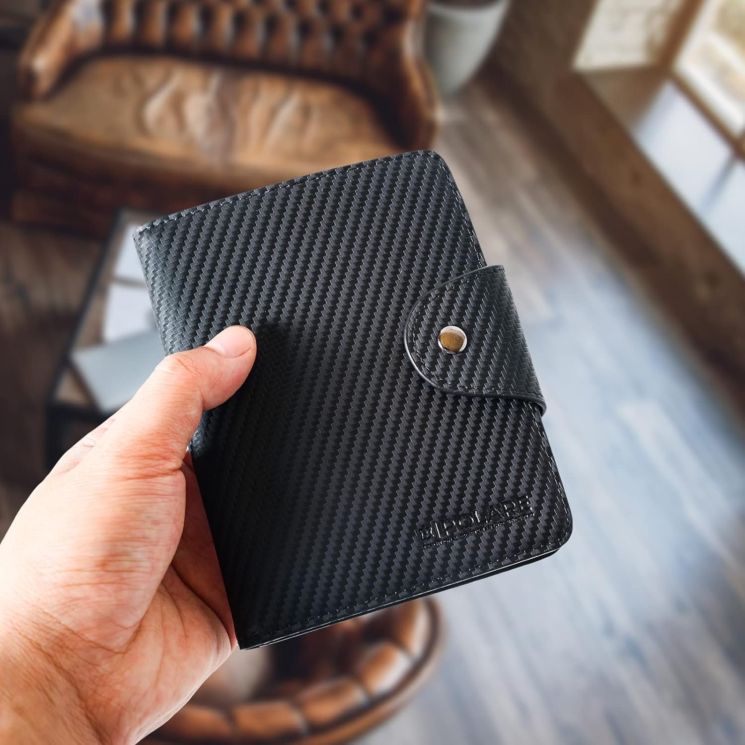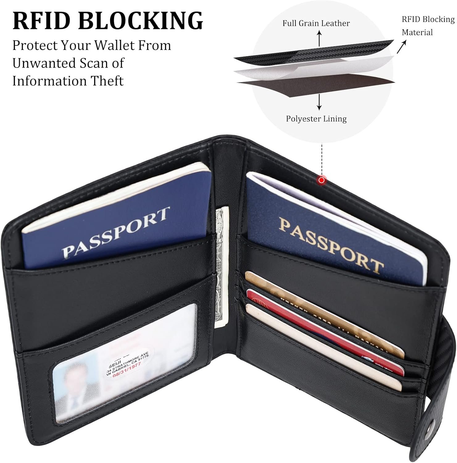 Polare Full Grain Leather Slim and Soft RFID Blocking wallet For Men Snap Bifold Travel Wallet Passport Holders 2 Passports (Carbon Black)