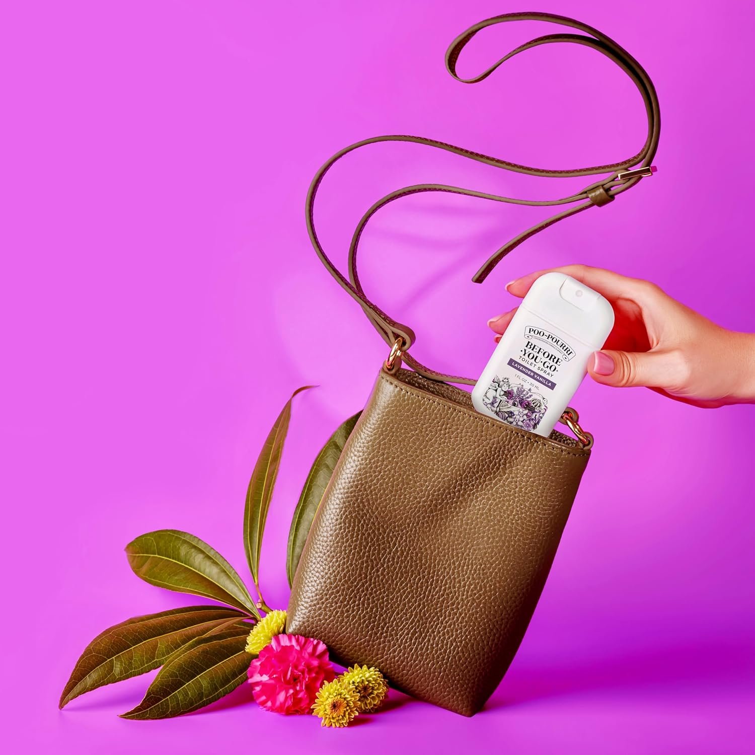 This Poo-Pourri 1 oz. Pocket Travel sprayer is formulated with essential oils and other natural compounds that prevent bathroom odors before they begin! Just spray Poo Pourri into the bowl before-you-go, the proprietary formula creates a protective barrier on the water surface. This barrier is designed to trap unpleasant bathroom odors beneath the surface and keep them out of the air. All you smell is a refreshing bouquet made from Lavender, Vanilla and Citrus!