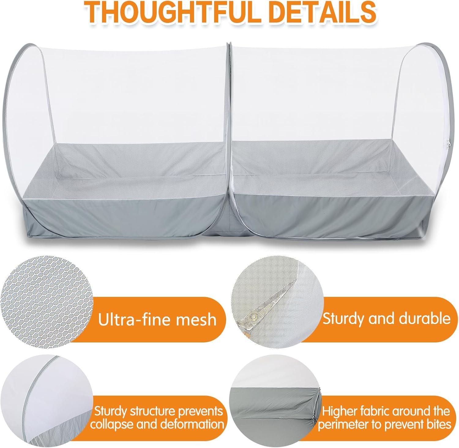 PREMIUM QUALITY MATERIAL: Mosquito net is made of high-density mesh material, which can isolate 99% of mosquitoes, light and strong, not easy to tear, Upgraded and reinforced support poles make the mosquito net not easy to be deformed and broken