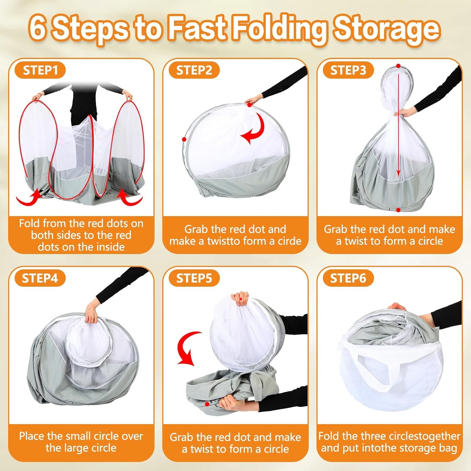 EASY TO INSTALL AND FOLD: Simply open the package and remove the fixing rope, the mosquito net for bed will automatically pop up. After use, you can fold mosquito tent into a 34cm diameter circle in just 6 steps and put it into a storage bag