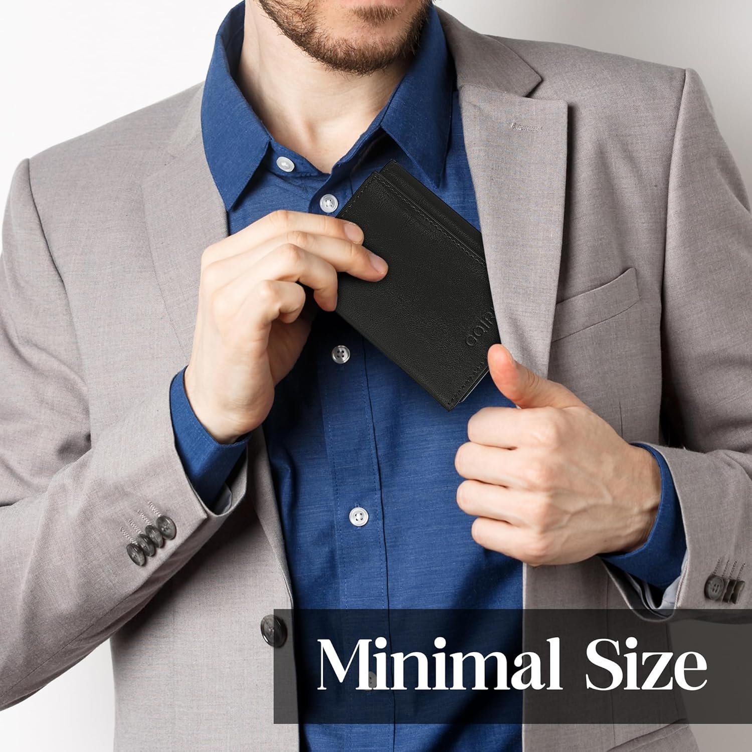 Slim and Compact: This minimalist men’s wallet measures 3.9×2.8×1 inches, fits in your pocket without adding unnecessary burden to your pocket.