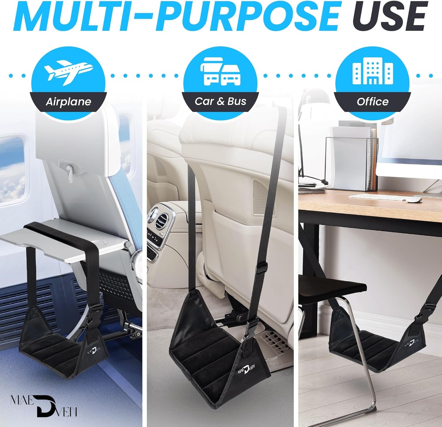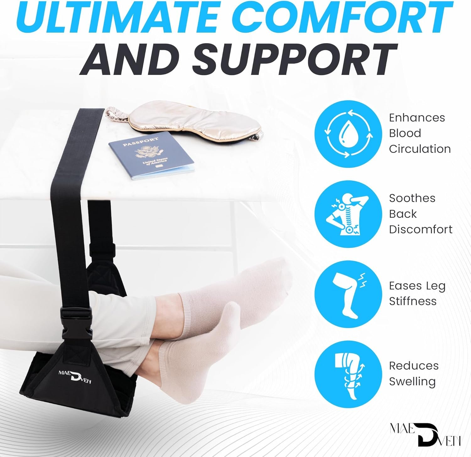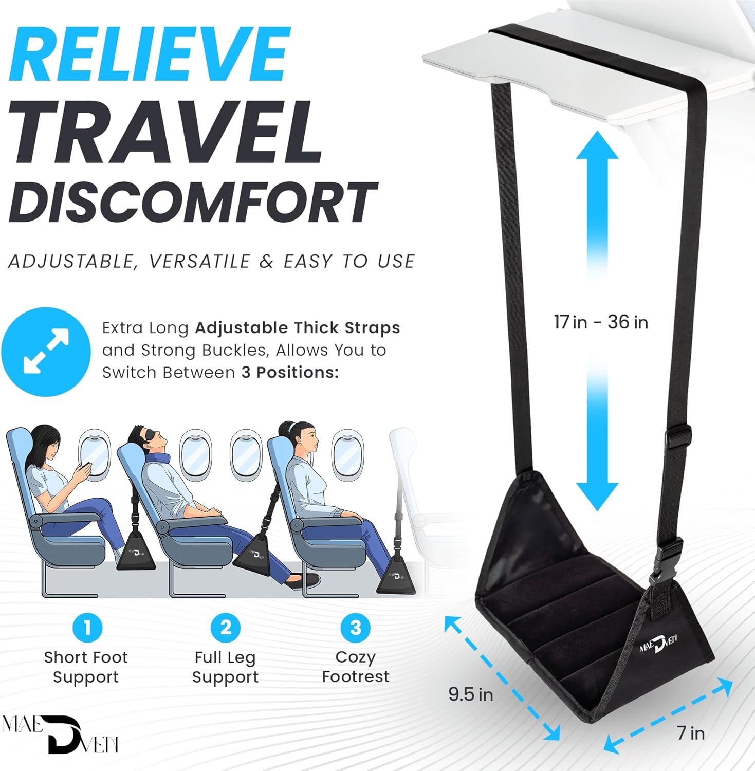 Travel-Friendly Comfort: Experience instant relief with our leg hammock for airplane travel; our foot rest for air travel relieves pressure on your back, knees, & hips, and reduces swelling, increases circulation & provides a pain-free journey