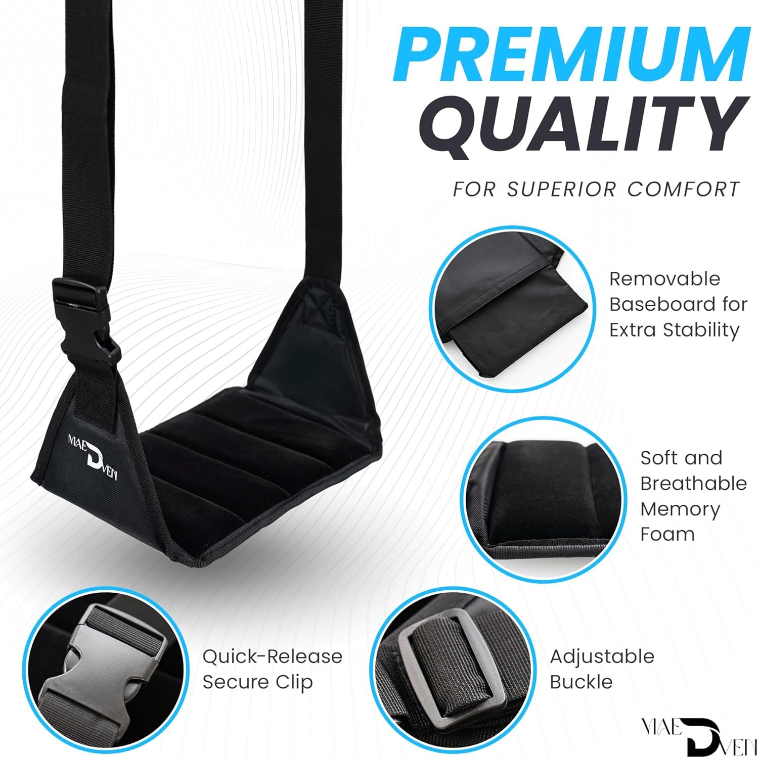 Portable Airplane Foot Rest (Premium Memory Foam), No Feet Clashing Airplane Foot Hammock, Removable Base & Adjustable Straps Foot Hammock for Plane Travel, Light & Ergonomic Plane Travel Essentials