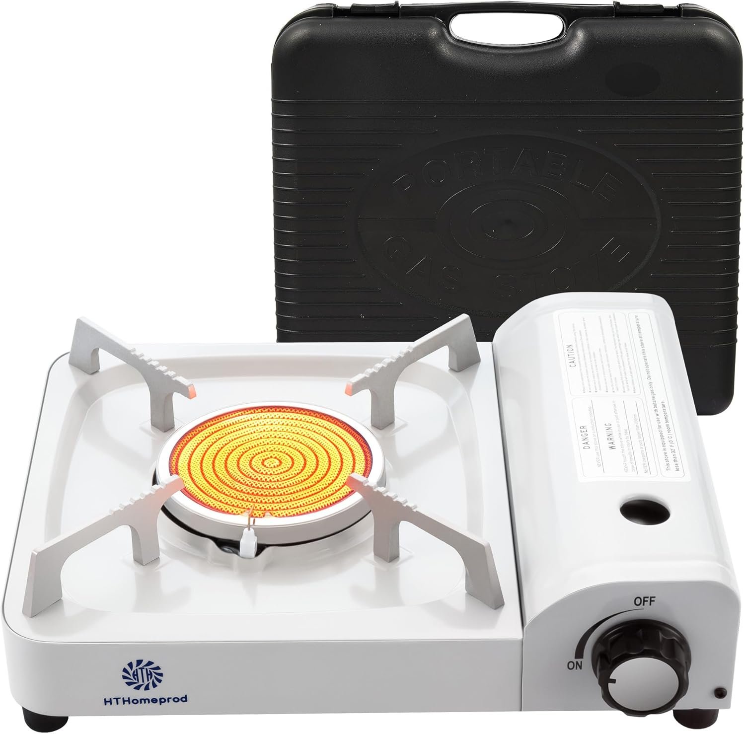 HTHomeprod butane burners give you a portable, nonelectric cooking option to add a saute station to any event. A ceramic honeycomb infrared burner provides an infrared flame, as its ceramic plates heat up, producing infrared energy that gets transferred directly to the surface of the food. This butane stove has a powerful heating capacity of 1200 BTU; heats quickly and heats large areas evenly. Innovative energy-saving burner transforms open flames into infrared heat radiation, almost no open flame and camping stove won’t be extinguished by wind or water. Ensures the heat remains stable even during windy conditions. Great for those who love to cook outdoors.Perfect for camping, hiking,RV