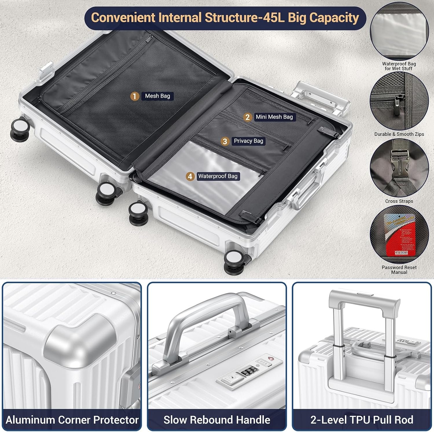 【Ultra Secured Suitcase TSA Lock】 Carry on luggage designed 2 built-in TSA-accepted locks at buckle close enable the main. A compartment to lock and one combination lock at the top enable the front door that provide peace of mind when checking cases through security